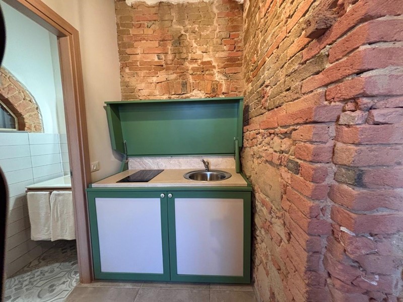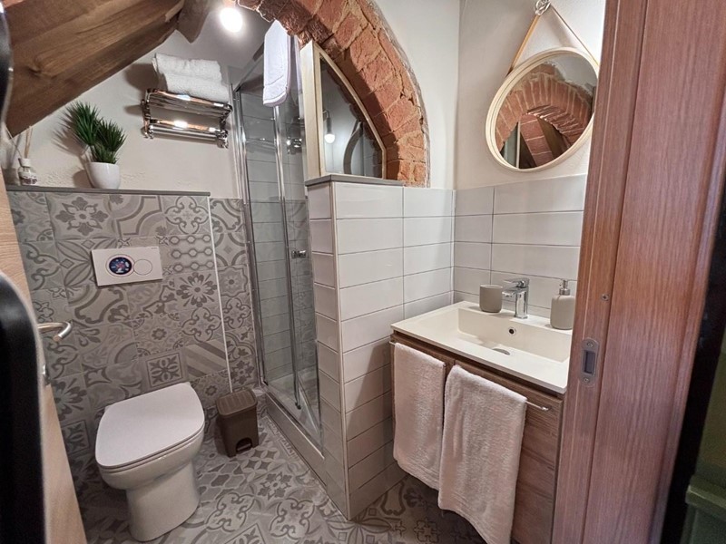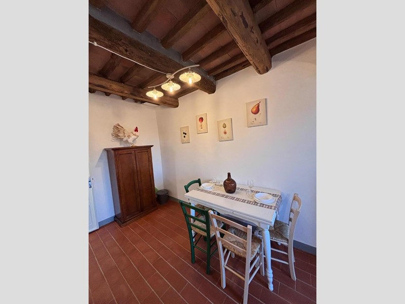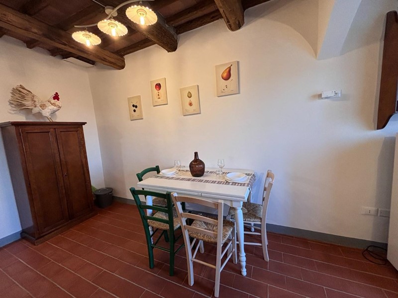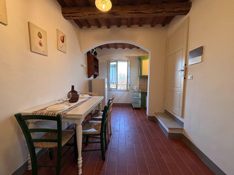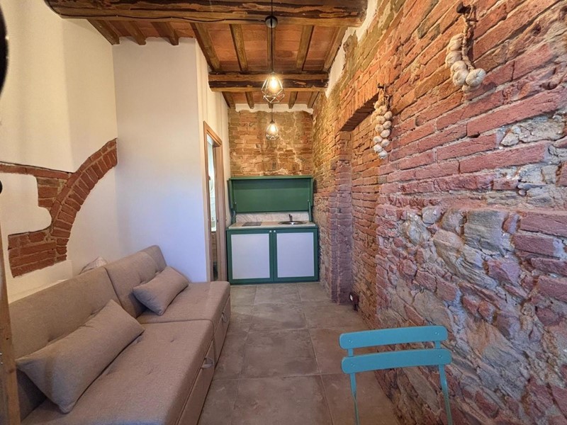 All’ingresso, sarete accolti da una stanza arredate con gusto, completa di una piccola cucina un elegante bagno con doccia e un comodo divano letto. Le pareti in pietra e i soffitti con travi a vista creano un’atmosfera calda e accogliente, ideale per gustare momenti di relax. Al primo piano, troverete una cucina abitabile con una finestra panoramica che offre una vista incantevole sulle colline circostanti, perfetta per sorseggiare un caffè al mattino.