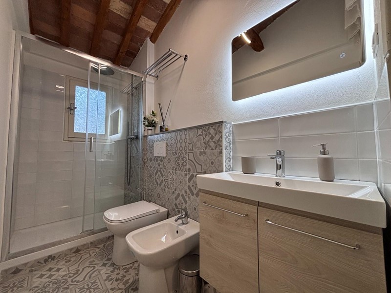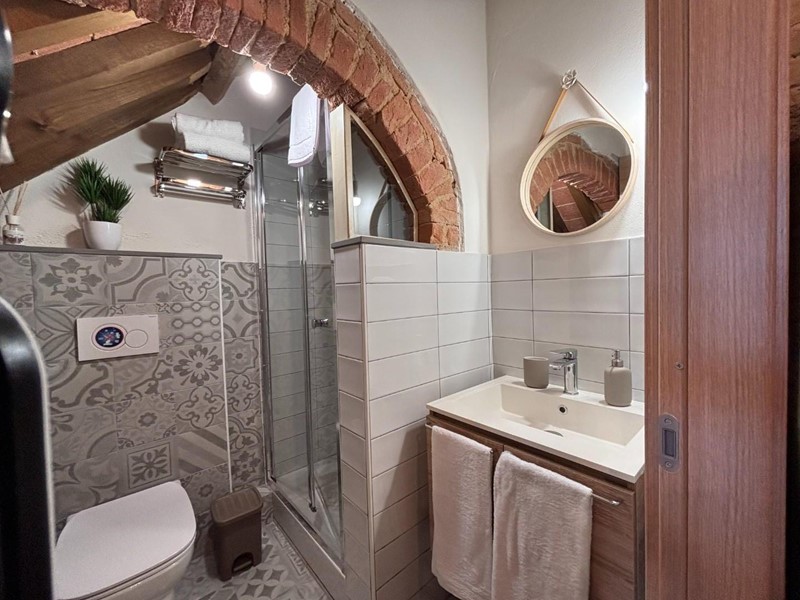 Salendo al secondo piano, due camere matrimoniali vi aspettano, caratterizzate da soffitti tipici toscani con travi e mezzane, inondati di luce naturale oltre un secondo bagno con doccia e finestra. Una terza stanza, versatile e perfetta come area relax o ufficio, si apre su un magnifico terrazzo panoramico, dove potrete godere di tramonti indimenticabili e della bellezza naturale della Toscana.