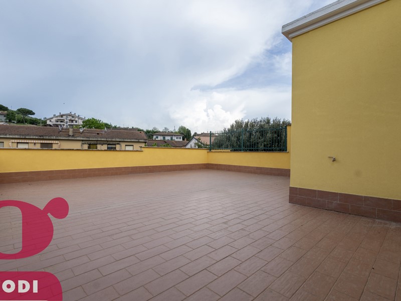 L'appartamento misura 57 mq (commerciali) ed è situato al 3° piano di una palazzina recentemente ristrutturata, servita da ascensore e con un totale di [NUMERO] unità immobiliari. Un luminoso e funzionale soggiorno con angolo cottura si affaccia sull'ampio TERRAZZO di 60 mq, ideale per trascorrere momenti di relax all'aperto e godersi la splendida vista. Un disimpegno collega la zona giorno ad un bagno con doccia e ad una camera matrimoniale.