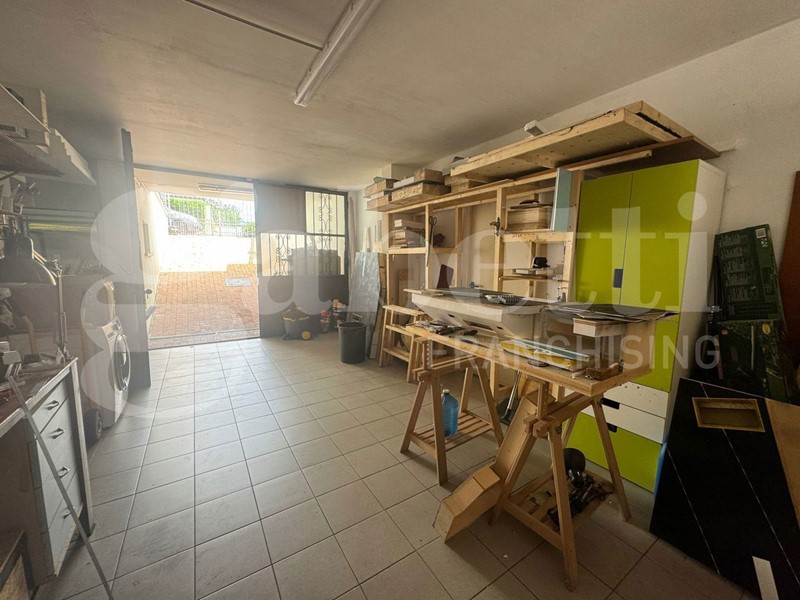 Al piano interrato, collegato tramite scala interna, troviamo una tavernetta con camino, lavanderia, dispensa e box auto doppio.
