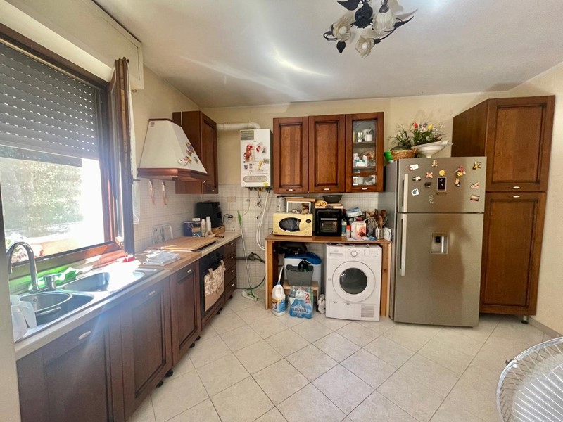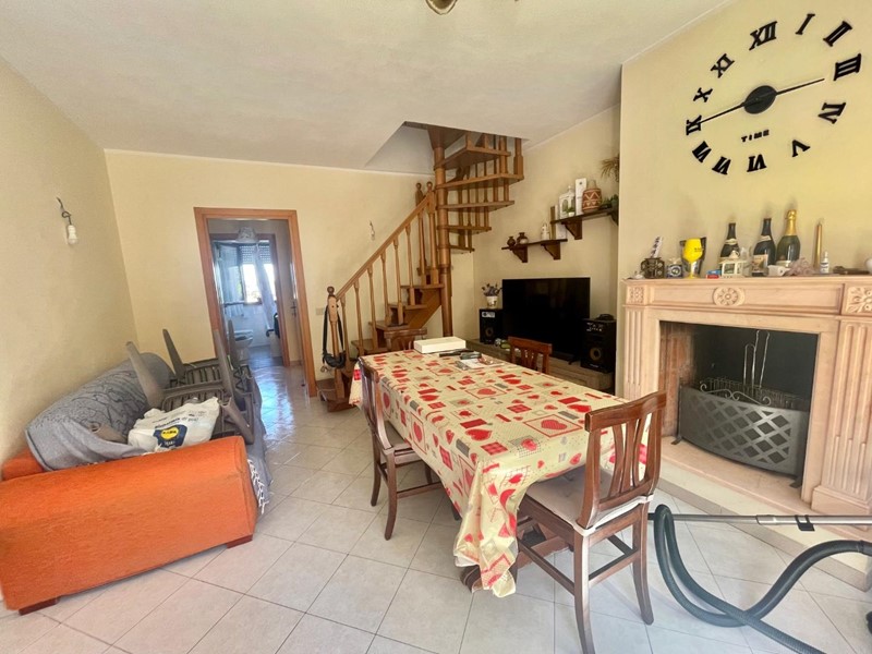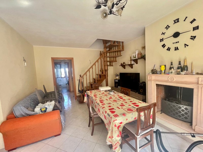 Dal cancellino pedonale si accede alla proprietà e salendo le scale esterne si giunge al portoncino blindato, l'ingresso è nella zona giorno composta da sala con camino che rimane separata dalla cucina abitabile con ampio ripostiglio.