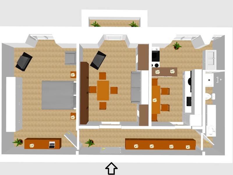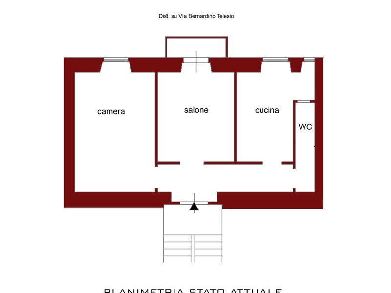 L' immobile ha un lungo corridoio che lambisce una camera da letto, un soggiorno, una cucina, ed un servizio.
