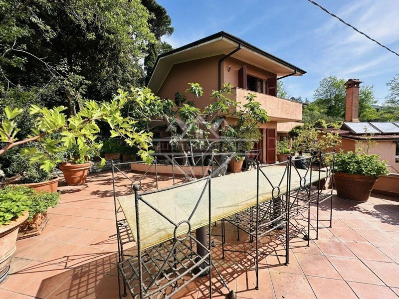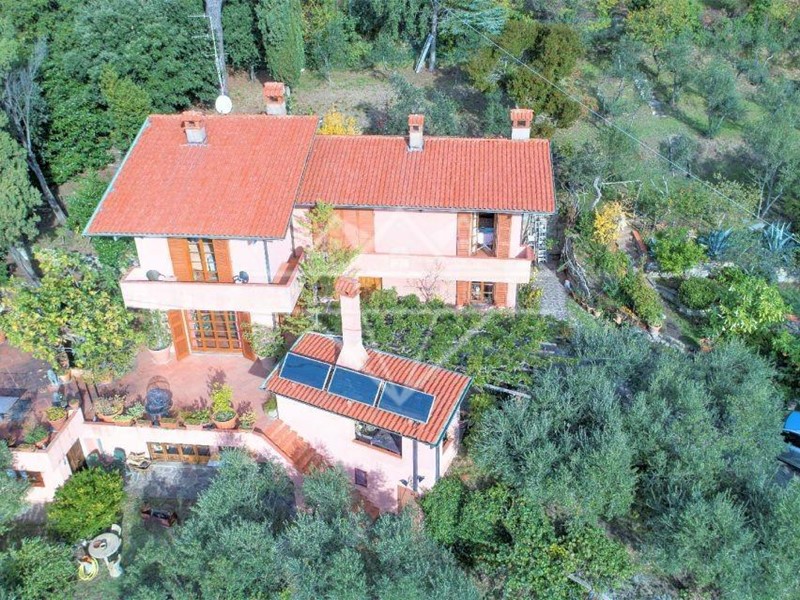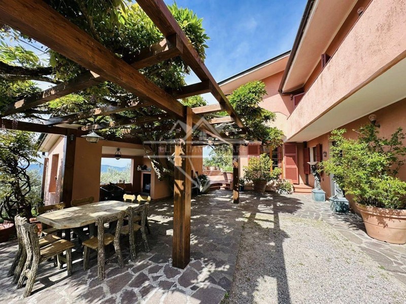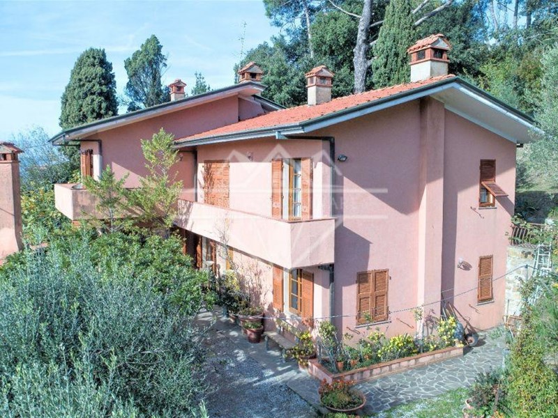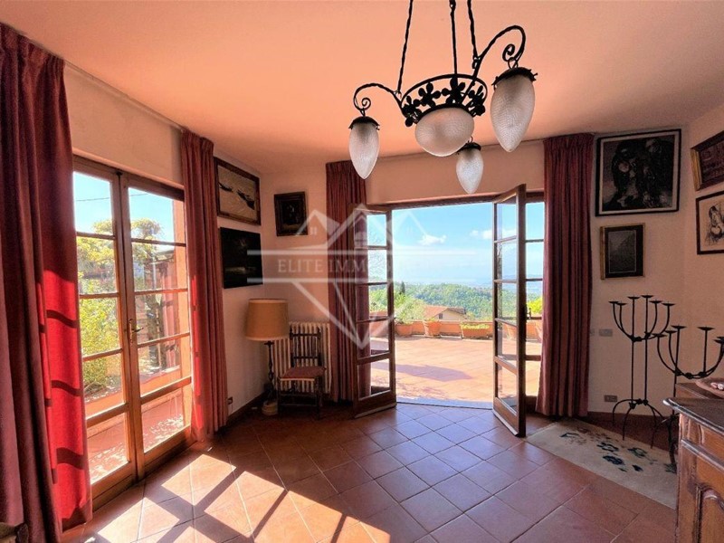 La Villa con comodissimo accesso dalla strada, completamente recintata, si sviluppa su tre piani. Varcati il cancello d'ingresso una breve stradina ci porta davanti alla splendida villa, con più posti auto. L'esterno del piano terra è caratterizzato da ampi corti - terrazzi in cotto fiorentino che si affacciano sul giardino, arredati con tavolo per cene all'aperto, salotto da esterno per aperitivi con la possibilità di godersi la splendida vista del mare e delle colline. In queste corti, piante, vasi, sculture, creano un ambiente piacevole e profumato con un gelsomino sul pergolato che ospita il comodo tavolo per gli ospiti. Entrando dal ampio ingresso, troviamo "l'anima" della casa, una grande cucina abitabile in muratura, con cucina economica, con finestra e porta finestra che si affacciano sulle corti esterni con un pergolato con l'uva che ricorda le case di una volta ... Una sala con imponente camino completa questo piano. Comoda scala porta al primo piano, zona notte per eccellenza con 4 camere da letto e 3 servizi. Anche qui, quasi tutte le camere hanno porte finestre su terrazzi - balconi dove lo sguardo si perde fra vedute delle Apuane e della meravigliosa costa ligure di Lerici e Portovenere. Un ulteriore piano sotto strada (dovuto all'inclinazione del terreno), troviamo una sala con camino e ulteriore servizio. Il giardino e terreno vicino alla casa è pianeggiante con la possibilità di realizzare una Grande Piscina.
