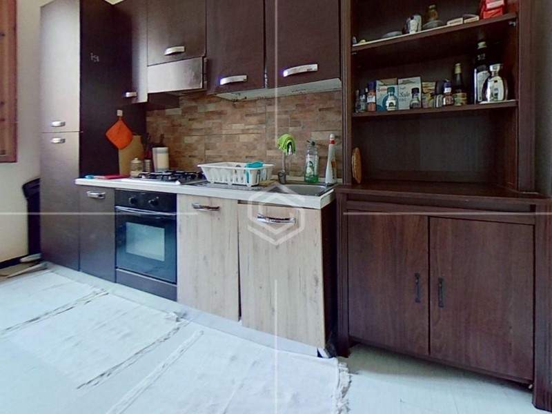 L'accesso all'abitazione avviene tramite un vano scale che conduce a un balcone, preludio all'ingresso principale. Varcata la soglia, si è accolti in un ampio e luminoso soggiorno, ideale per momenti di relax e convivialità. La sala da pranzo adiacente offre uno spazio raffinato per pranzi e cene, completando la zona giorno.