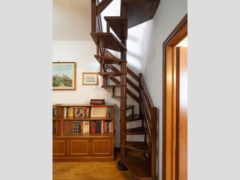 Una caratteristica scala in legno conduce alla bellissima mansarda abitabile dove poter ricavare una zona ufficio o zona relax.