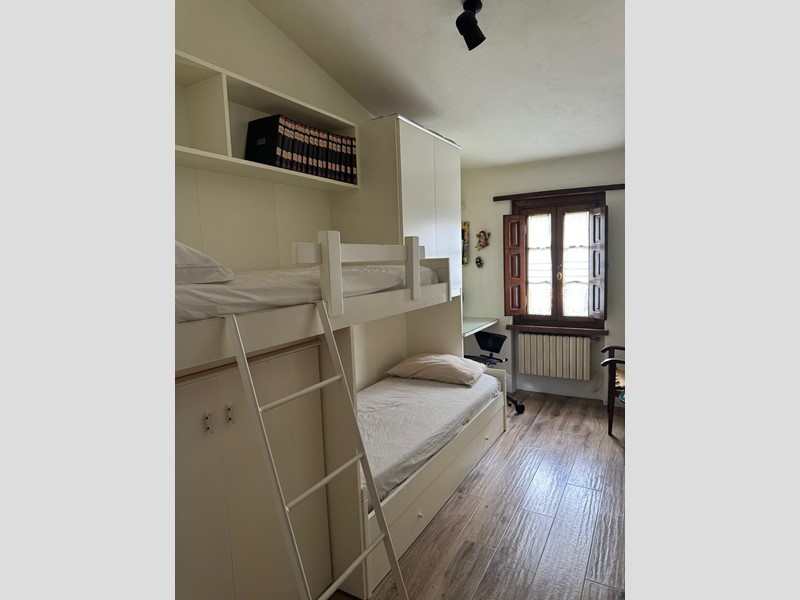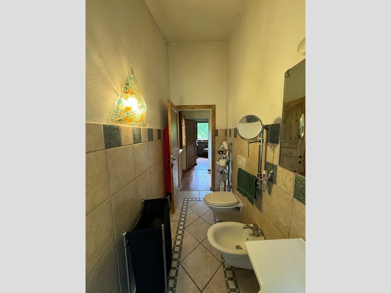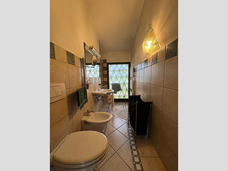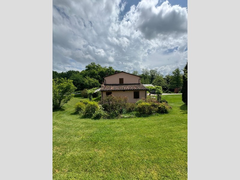 La proprietà di circa 375 mq è composta da due abitazioni. La prima entrata in zona giorno con camino angolo cottura da dove è possibile accedere al giardino, al primo piano due camere, studio e un bagno con doccia e bellissimi affacci su tutta la proprietà.