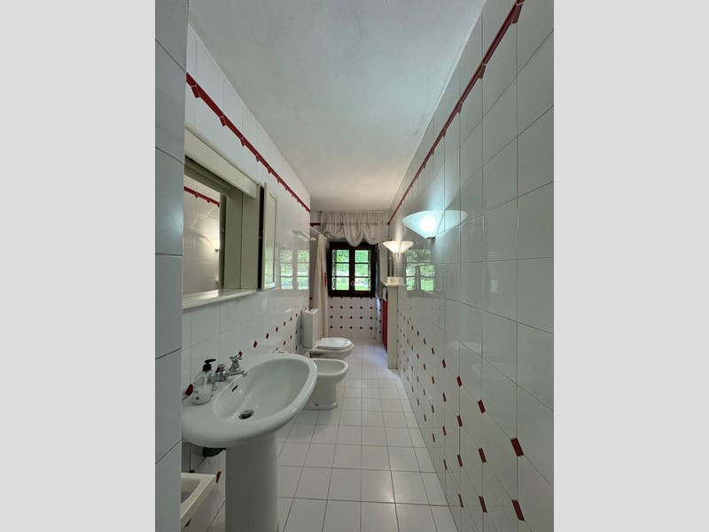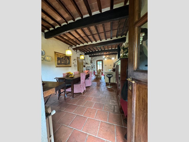 La seconda sala con camino, cucina abitabile, sala da pranzo con camino, camera e bagno. Al primo piano quattro camere e ampio bagno.