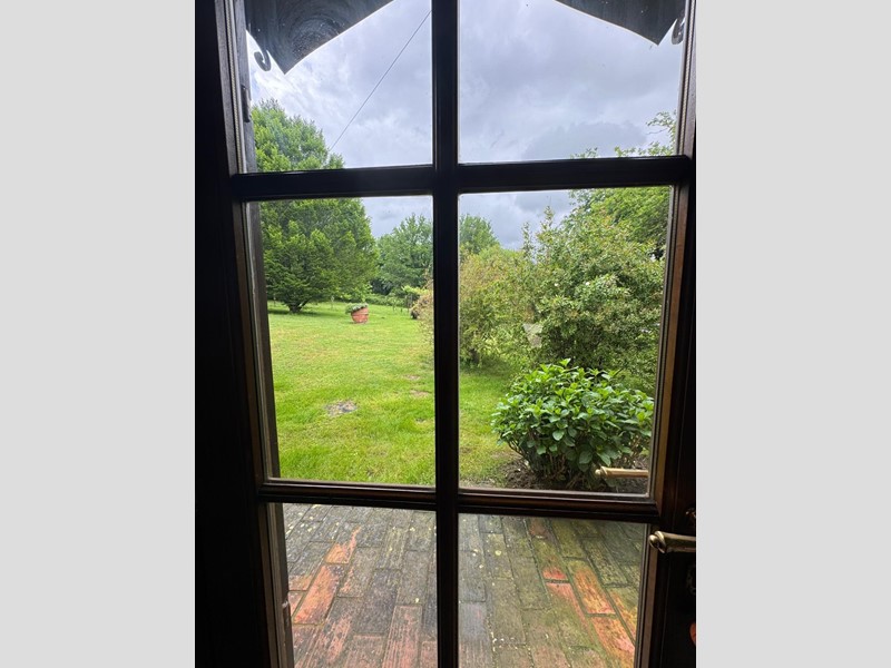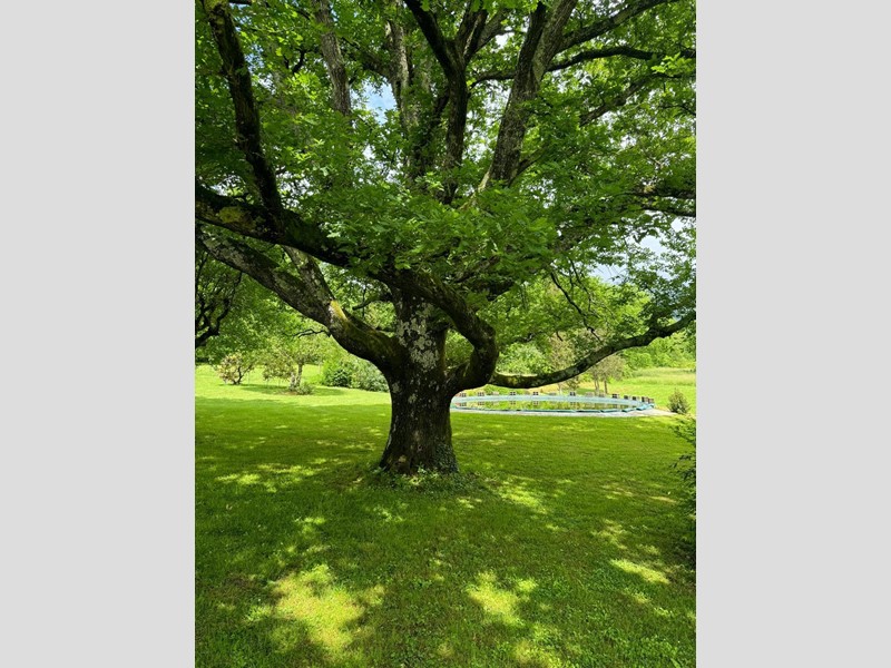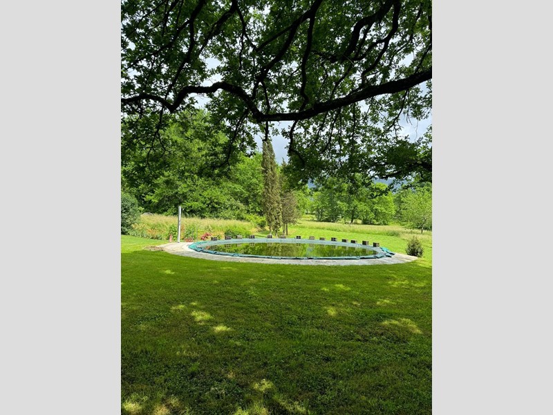 Il giardino di circa 2ha non perfettamente pianeggiante crea un bellissimo movimento scenografico intorno al casale. Nella proprietà troviamo un laghetto artificiale e un annesso/limonaia con forno e posti auto coperti.