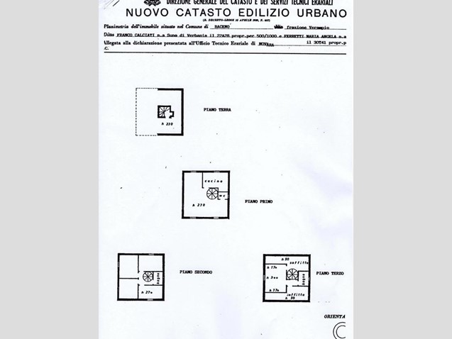 Casa indipendente in località Verampio con ampio terreno circostante. Immobile su 4 livelli a pianta quadrata di mq. 58 per piano. Superficie lorda mq. 212 : box di mq. 26, cantina di mq. 32, abitazione di mq. 154.