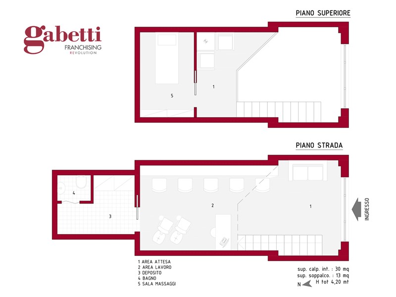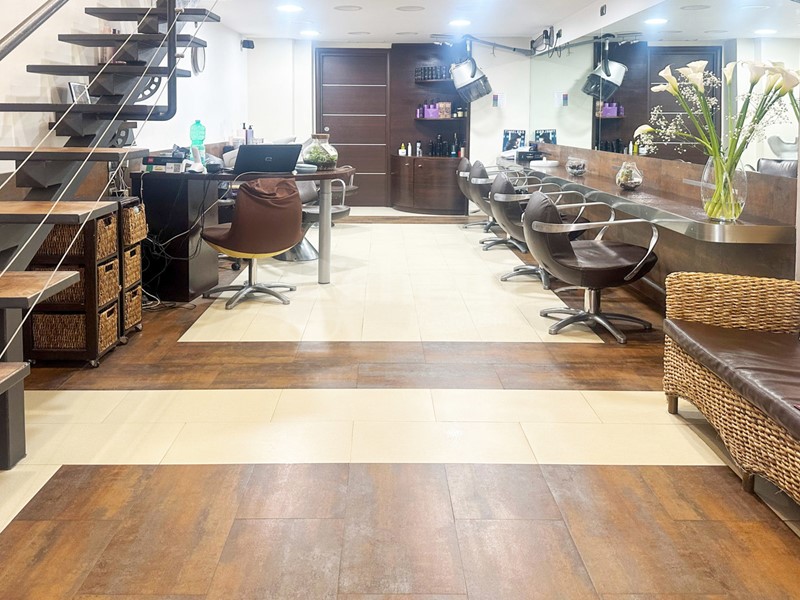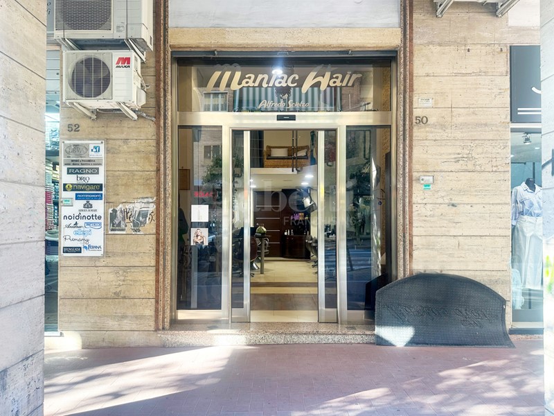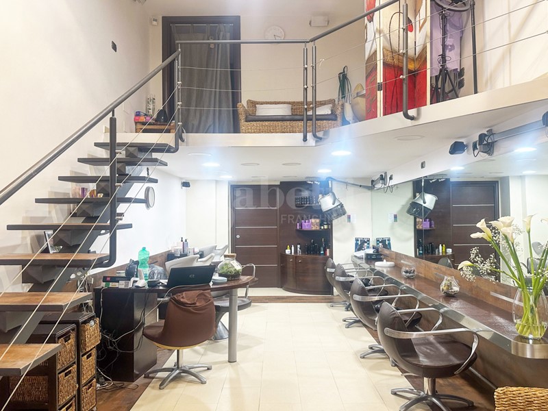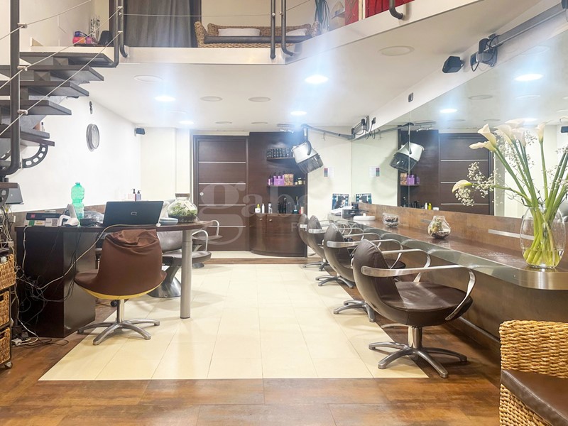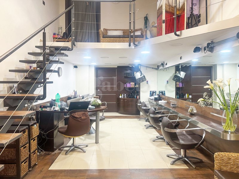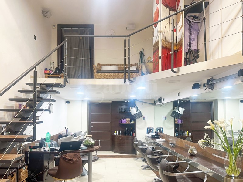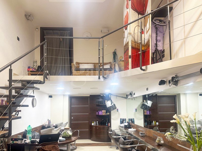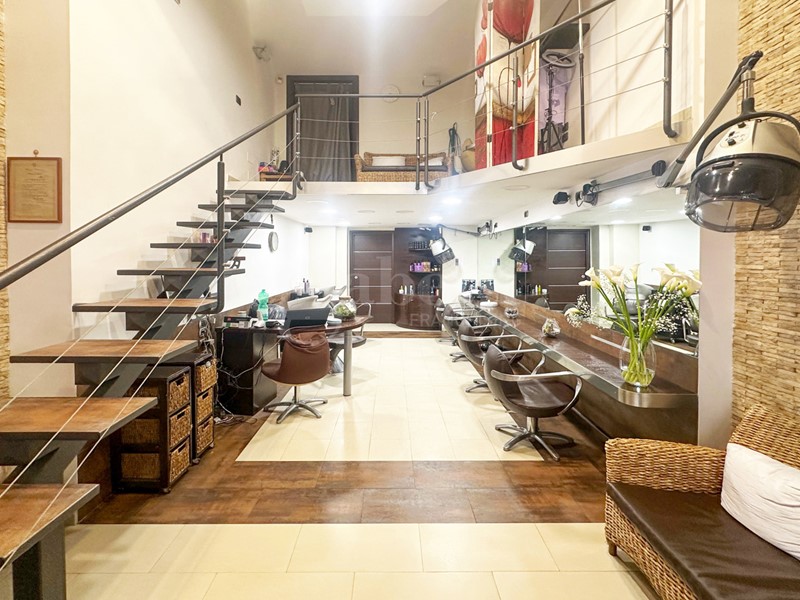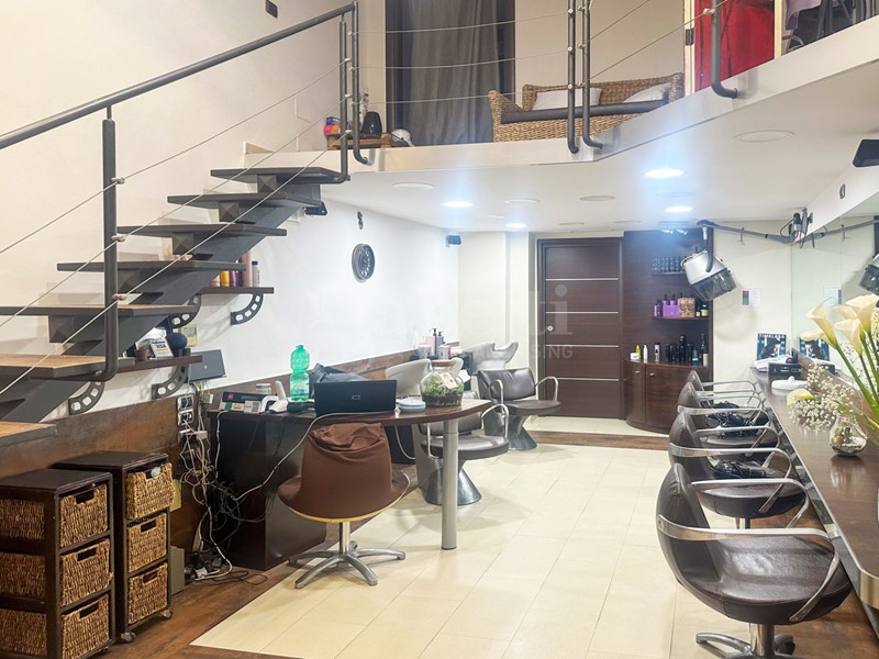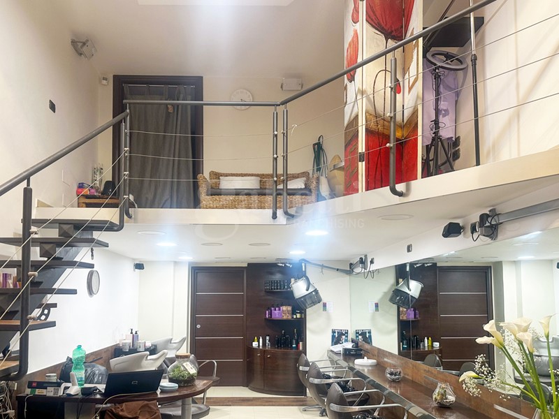 Il locale si sviluppa su una pianta rettangolare ed è attualmente adibito a salone di parrucchiere per signora. Al piano strada troviamo un primo ambiente di lavoro accogliente, seguito da un vano retrostante adibito a deposito, con servizio. Una scala interna conduce ad un soppalco, oggi utilizzato come ulteriore spazio operativo.
