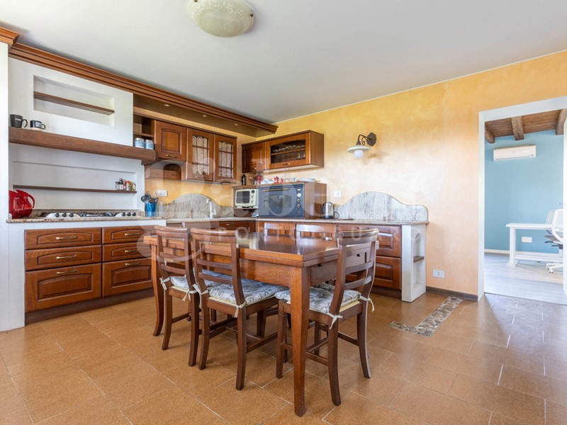 Sviluppata su due livelli terra cielo per complessivi 230mq più un ulteriore piano sottotetto al grezzo di ulteriori 105mq, al piano terra si compone di un moderno e luminoso soggiorno, una bellissima e pregiata cucina su misura, una lavanderia e dalla taverna che rappresenta il vero fulcro di questa abitazione, ambiente unico per spazi e finiture adornata da un camino in muratura e da stupende travi a vista, in un connubio perfetto tra tradizione rurale e modernità.