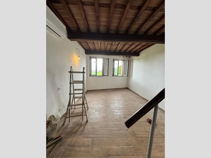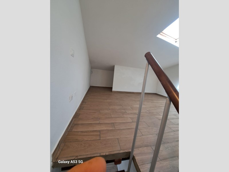 Si compone al Piano terra da ingresso con vano scale di accesso alla zona giorno e grande garage che accoglie fino a due macchine, al 1°P ampio soggiorno, cucinotto, e bagno, al piano mansardato semi praticabile predisposizione per camera da letto!