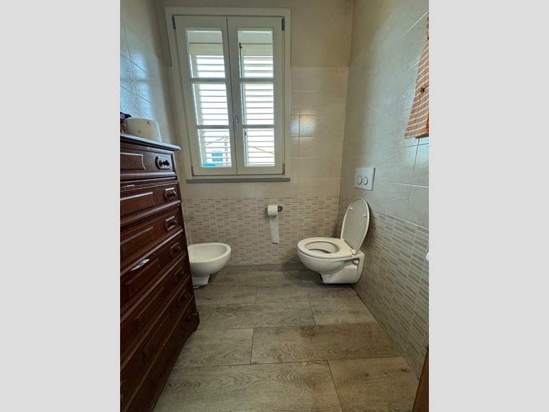 La villa disposta su due livelli, ogni stanza al piano terra ha un uscita sul giardino! abbiamo una ampia stanza di ingresso dove ricreare un guardaroba, ampio soggiorno con caminetto, cucina abitabile con accesso al porticato ideale  per pranzi e cene all'aperto, disimpegno bagno di servizio con finestra, ripostiglio lavanderia, camera al piano terra con bagno privato e cabina armadio, pavimenti in gres effetto parquet chiari, scala in pietra serena per accesso al piano primo composto da due camere grandi una cameretta e bagno con vasca, disimpegno accesso alla soffitta da scala retrattile. infissi bianchi in legno interni ed esterni con doppio vetro e persiane esterne. riscaldamento a pavimento, panelli solari e fotovoltaico con accumulo, allarme e aria condizionata. Circondata da giardino di circa 400mq con casetta in legno.  Acquedotto, fognature e pozzo. la villa si presta con la possibilità di creare due nuclei abitativi a euro 410.000 TR