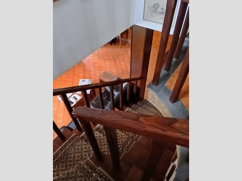 Tramite bellissima scala interna si sbarca all' ampio vano TAVERNA con CAMINO da cui si accede al secondo grande LOGGIATO.