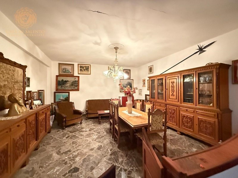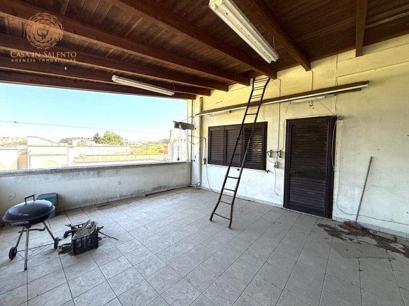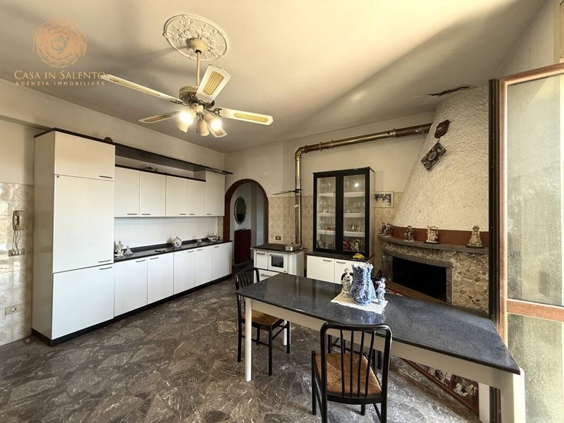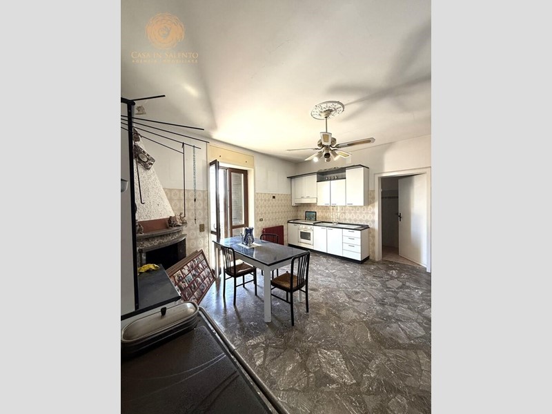 VENDESI ad Alessano in via dei Caduti, a pochi passi dal centro urbano ed in zona residenziale, casa indipendente che si sviluppa su due livelli, di circa 170 mq a piano. Il piano terra, accatastato come garage, è composto da un openspace con cortile retrostante di pertinenza. Un ingresso indipendente invece, conduce all'appartamento al primo piano che è composto da un ingresso, soggiorno, sala pranzo con camino, cuina, tre camere da letto di cui una con uscita sulla terrazza a piano, disimpegno, balcone e bagno. Lastrico solare di proprietà esclusiva. Ampio fronte sulla strada con portone di accesso per le auto e accesso secondario. Allacci alle pubbliche utenze di fogna, acquedotto e metano. C.E.: "G".