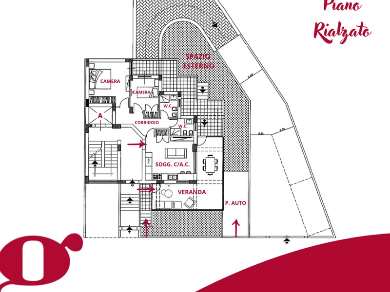 Completano la proprietà un ingresso condominiale e un secondo accesso indipendente tramite cancello carrabile, che conduce a un'area esterna esclusiva con posto auto riservato.