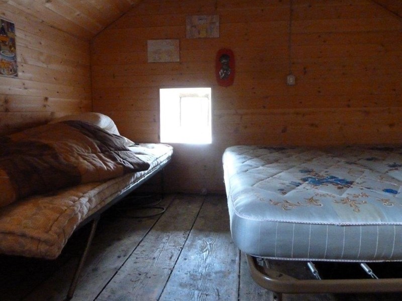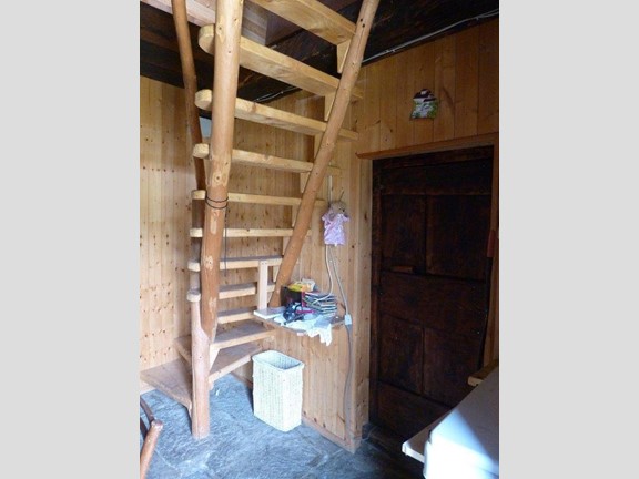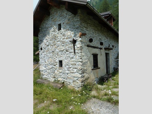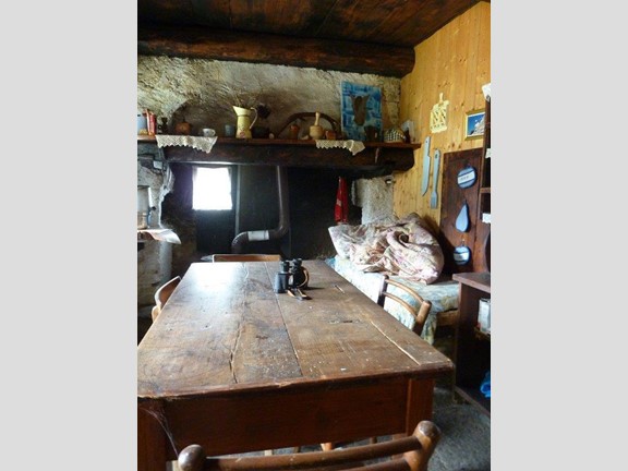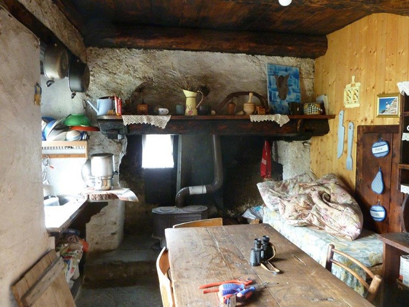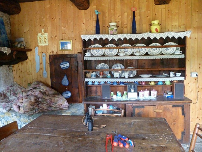 Il fabbricato comprende al pianterreno una zona giorno con il grande camino tradizionale ed un secondo vano ora di cantina ove ampliare l'abitazione e, con una rustica scala interna in legno, una grande camera di sottotetto ripartita in due settori. Sul lato a notte del fabbricato è stato ricavato il bagno esterno. La connessione alla rete elettrica è attivabile.