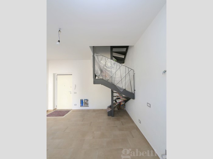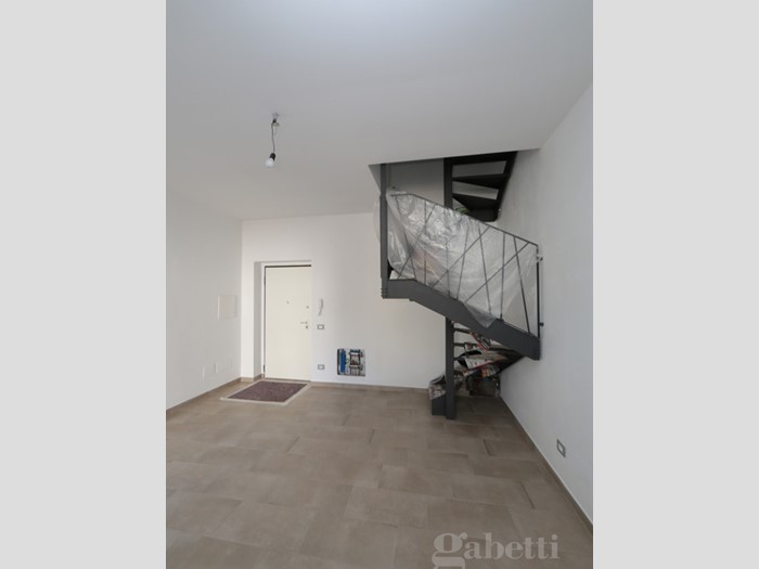 L'immobile consiste in una porzione di un piccolo stabile fronte strada di due unità; gli spazi abitativi sono disposti su due livelli; al piano terra si trovano la spaziosa zona giorno open space ed il pratico ripostiglio; una moderna ed elegante scala collega la zona notte, nella quale si trovano la camera da letto ed il bagno.