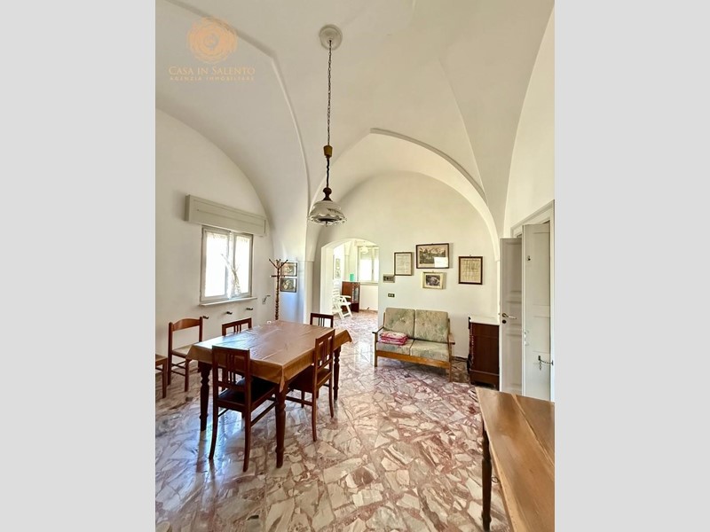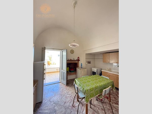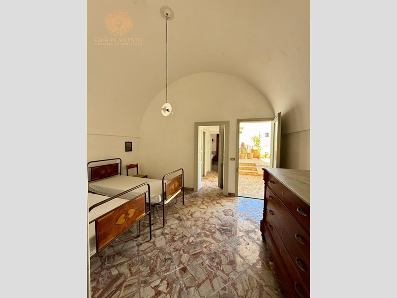 VENDESI a Montesardo, frazione del Comune di Alessano ( LE ), antica dimora indipendente con volte a stella e volte a botte. Questa antica dimora, mantiene intatto il fascino delle sue origini grazie alle suggestive volte a stella, tipiche dell’architettura locale, che donano agli ambienti un’eleganza senza tempo. L’immobile si sviluppa su una superficie di 165 mq escluso le aree scoperte e si accede da una veranda coperta sulla via principale del Paese a 50 metri dalla piazza principale; mentre per l’accesso secondario al garage si avvede da Via Cappelluzza. L’immobile è composto da ingresso, tinello, soggiorno, cucina con camino, due camere da letto, bagno ed ogni stanza accede alla veranda posteriore coperta di circa 60 mq oltre ad un importante ingresso coperto. Al piano seminterrato ci si accede anche da portone esterno e da una porta situata nella parte posteriore e troviamo un grande locale con camino ed acqua, un bagno, locale legnaia con uscita esterna e una cantina scavata nella roccia. La casa si presenta in ottimo stato con pavimentazione in marmo, predisposizione per impianto di riscaldamento, allaccio all’acquedotto. A pochi metri dalla piazza principale, l’immobile si trova nelle vicinanze di scuole, ufficio postale, tabacchi, bar, pizzeria e alimentari. C.E.: “G”. PREZZO RIBASSATO DA 159.000 € A 150.000 €