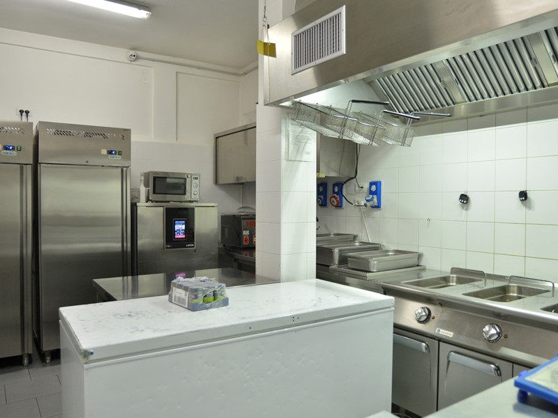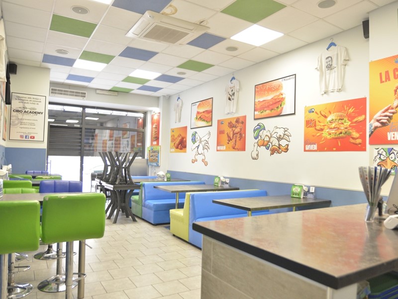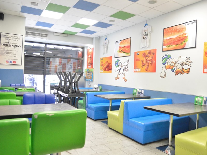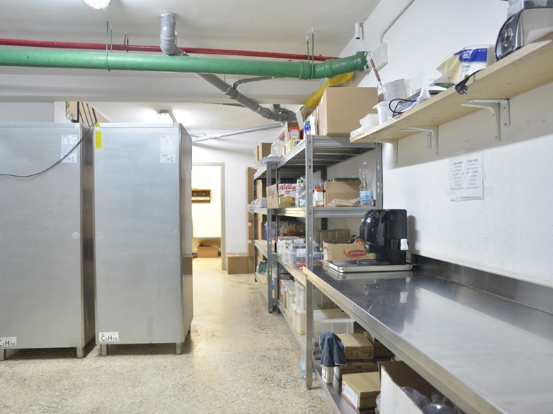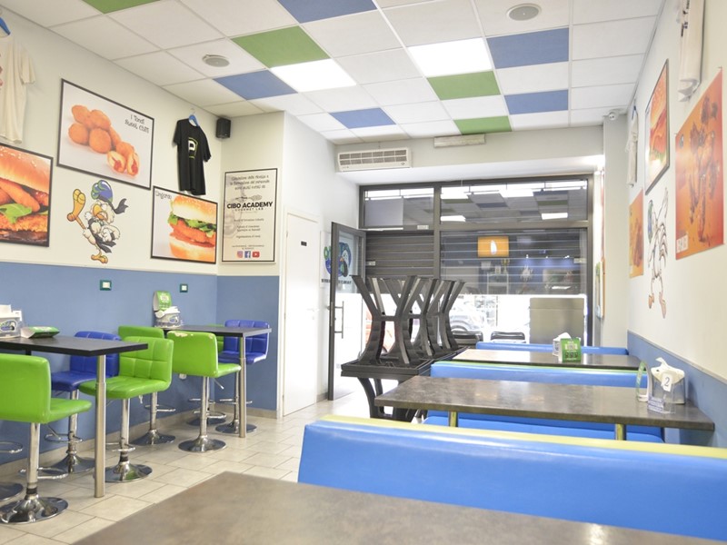 Il locale ha una grande vetrina alla strada, è in categoria catastale C/1 (negozio) e si sviluppa per mq. 80 ca. a piano terra divisi in un grande ambiente con bagno per disabili; la cucina con canna fumaria e bagno per il personale. A piano interrato ( mq. 80 ca.) è posto un open space ed un deposito.