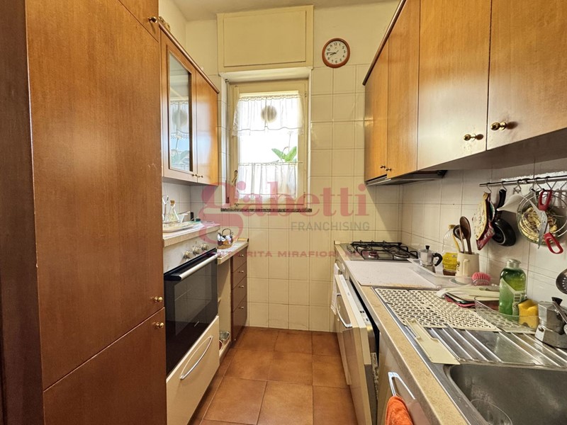 COMPOSIZIONE INTERNA: doppia esposizione nord/ sud, ampio ingresso, soggiorno con cucinino, due camere, armadi a muro, servizio, due balconi (di cui uno verandato con lavanderia);