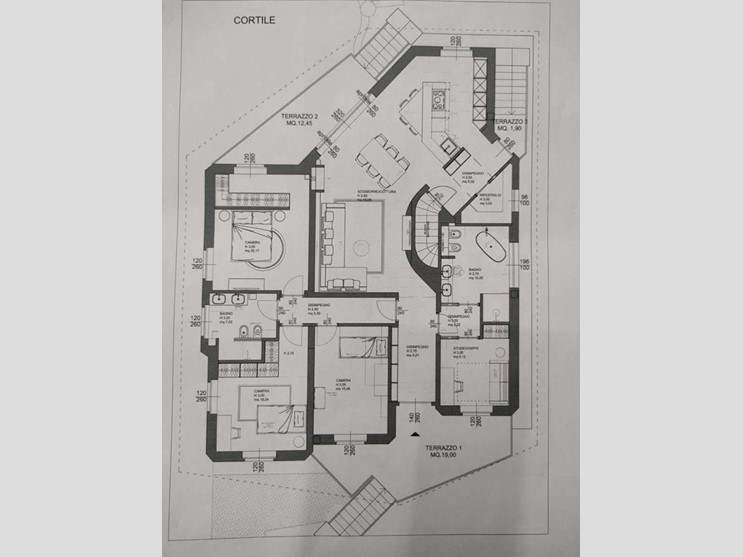 Il fabbricato vanta una superficie abitativa su unico livello al piano rialzato di circa 190 mq. oltre a 2 terrazzi, la cui zona giorno, fronte il meraviglioso parco interno lato sud/ovest, vanta un'ampissima zona cottura/pranzo ove poter posizionare una "cucina ad isola", zona pranzo fronte terrazzo lato sud-ovest in corrispondenza della zona divani, doppi servizi finestrati e n. 3 camere matrimoniali, di cui una munita di angolo cabina armadio e locale studio/ospiti.