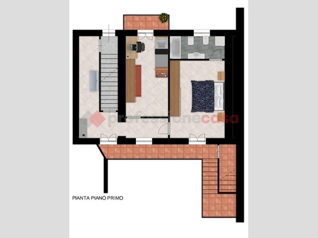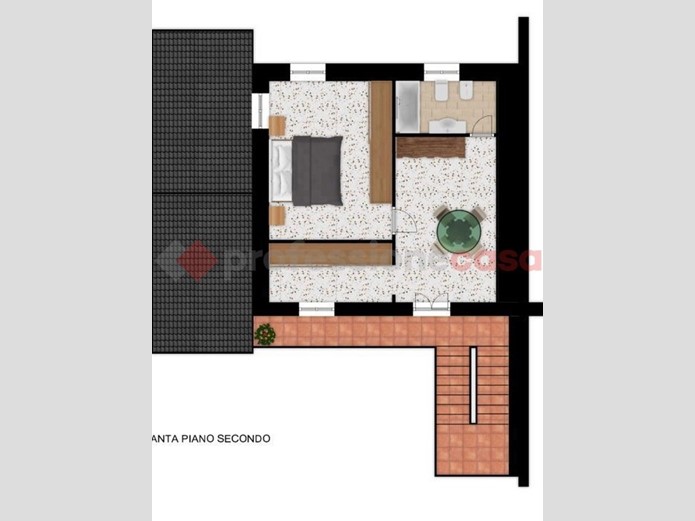 Infine al secondo piano, collegato tramite scala esterna, troviamo bilocale in stato originale che può essere sfruttato come ampliamento dell'esistente oppure si può creare un ulteriore unità abitativa distinta e separata.
