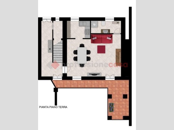 Al piano terreno si compone da ingresso su disimpegno, soggiorno con cucinino e un bagno finestrato con box doccia. Tramite comoda scala interna si accede alla zona notte, posta al primo piano, formata da disimpegno che collega le due camere da letto, una di queste con bagno privato con vasca.