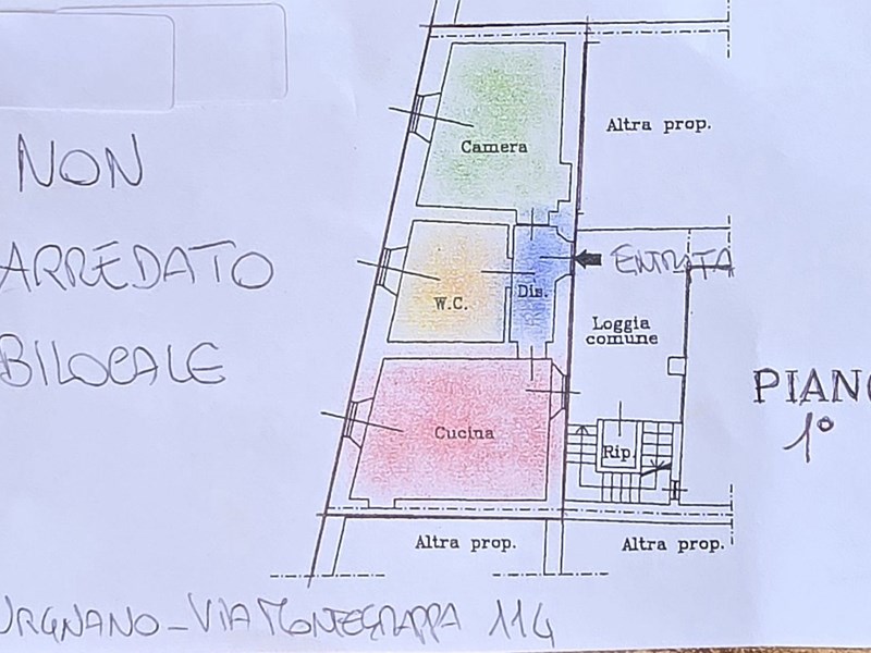 bilocale non arredato, ampio, mq. 70, composto da : n. 1 cucina, n. 1 camera da letto, n. 1 bagno ,luminoso, servitissimo, in centro paese, termo autonomo, piano primo, attacco internet, si animali domestici, doppi vetri, porta blindata, posto auto nelle vicinanze, bagno finestrato. Certificazione elettrica. Certificazione idraulica. Certificazione energetica classe G ipe 315,47