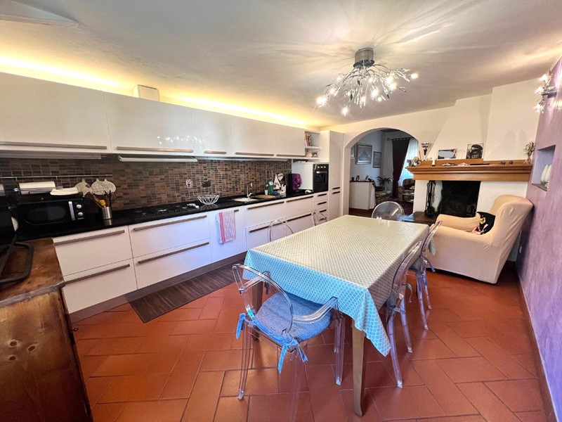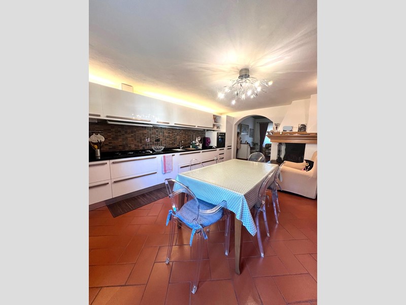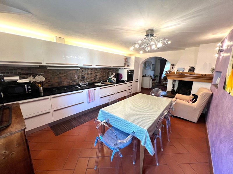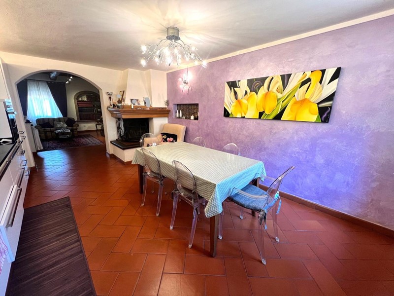 ingresso in ampio soggiorno, ampissima cucina abitabile con camino, 2 camere matrimoniali (di cui una grandissima), 2 bagni, OLTRE ripostiglio .