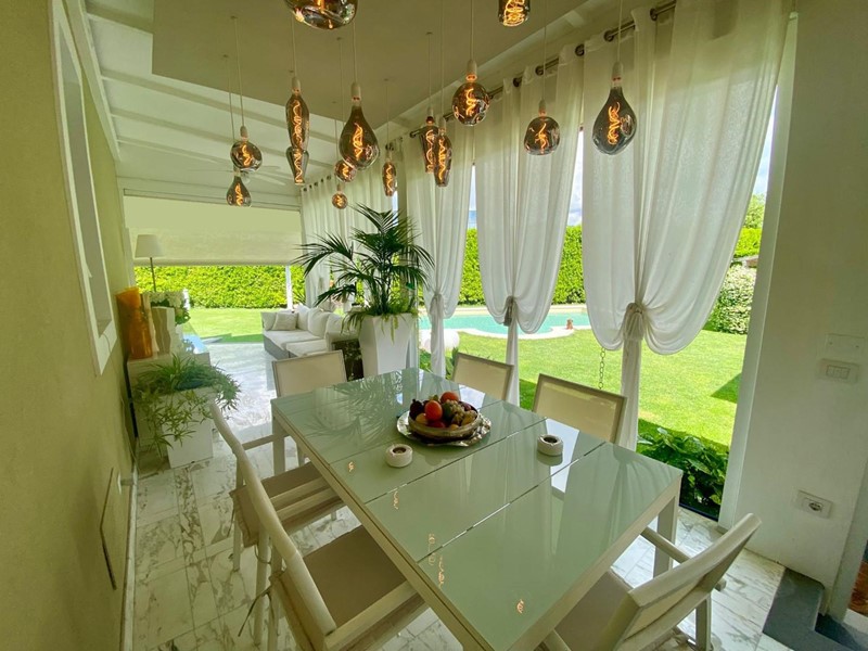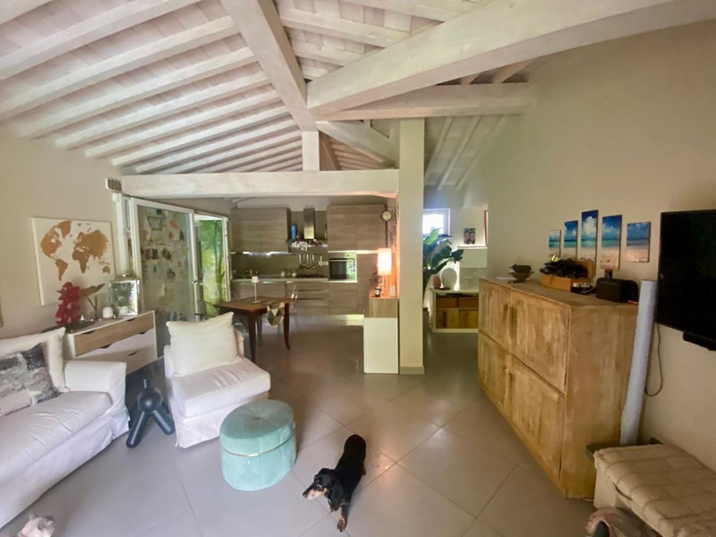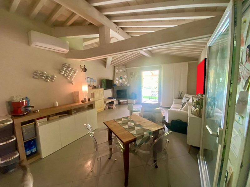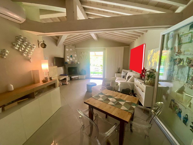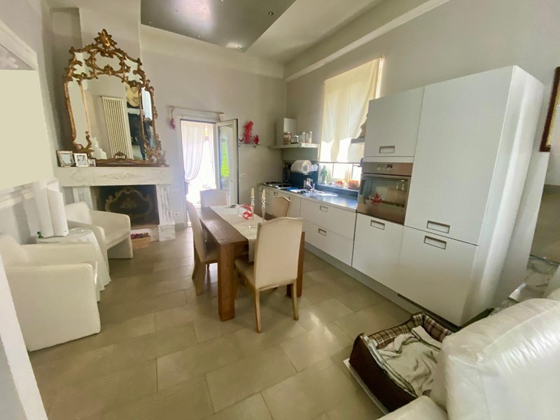 La villa principale si sviluppa per 115 mq tutti sul piano terra rialzato e si compone di ingresso, ampio soggiorno/pranzo con cucina open space con camino ed accesso al bellissimo porticato veranda che si affaccia sul giardino e sulla piscina, poi abbiamo un bagno, la camera princiapale, ripostiglio, ritornando all'ingresso troviamo alla sinistra la camera matrimoniale con bagno en suite. Aria condizionata canalizzata, termoautonomo a termosifoni a metano, infissi pvc antisfondamento e con doppi vetri, CAPPOTTO TERMICO.