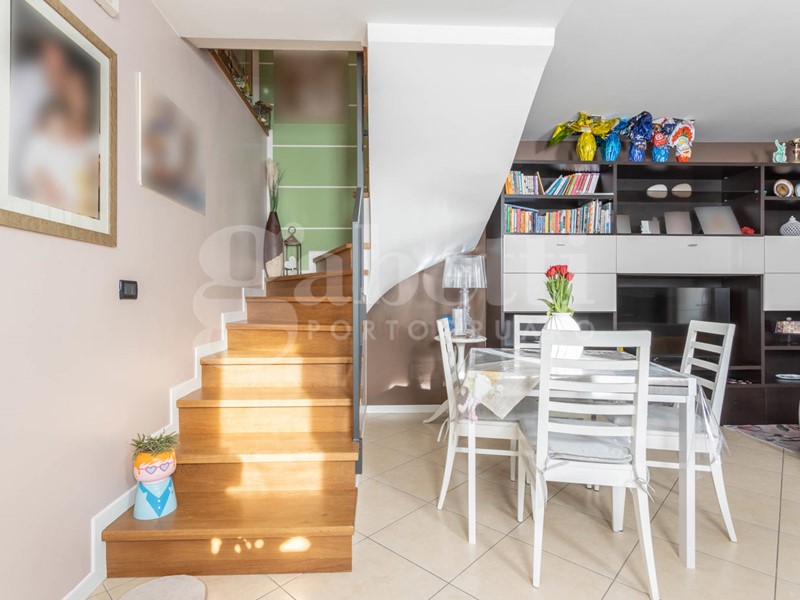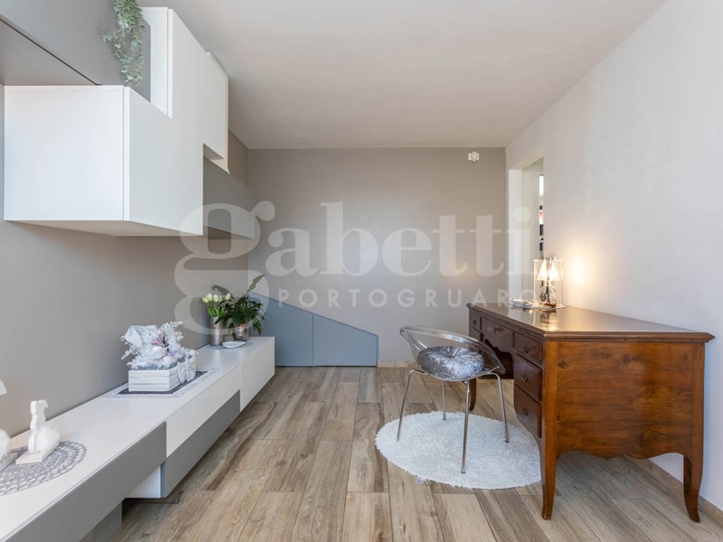 Al piano terra, l'abitazione ci accoglie con un'ampia e luminosa zona giorno, composta da una cucina separata di gusto raffinato e un elegante soggiorno separato. Completano il piano una pratica lavanderia ed un comodo ripostiglio.