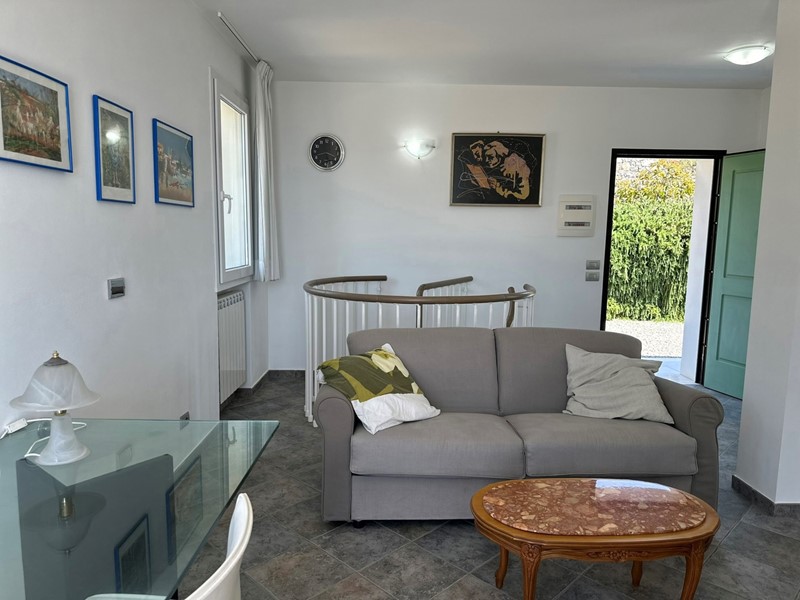 Al piano terra, l'ingresso si apre su un luminoso salone con cucina a vista di nuova realizzazione, perfettamente integrata negli spazi. Un disimpegno conduce alla camera padronale matrimoniale, arricchita da una splendida porta finestra con affaccio diretto sul giardino. Completano il piano una seconda camera doppia e un bagno.
