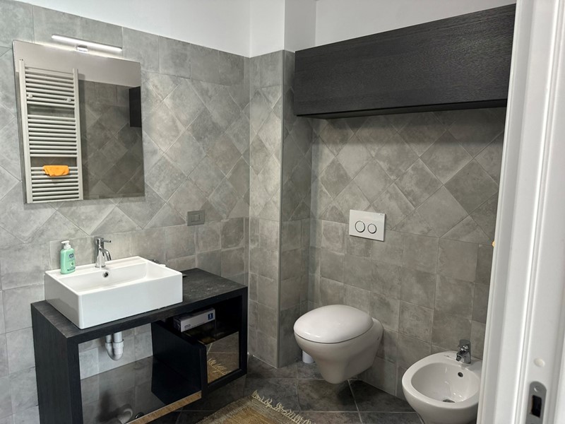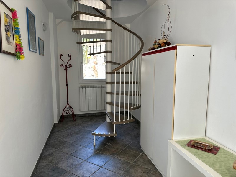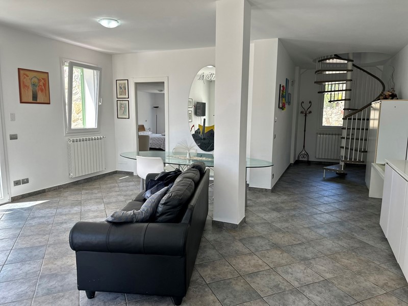 Dal salone, una raffinata scala a chiocciola di design conduce al primo piano, dove si apre un accogliente salottino a vista, trasformabile facilmente in quarta camera, che affaccia su una splendida terrazza, con scorci incantevoli. Troviamo inoltre una terza camera matrimoniale con porta finestra sul terrazzo e un secondo bagno finestrato con accesso diretto anch'esso al terrazzo.