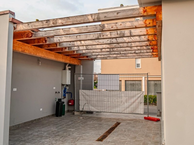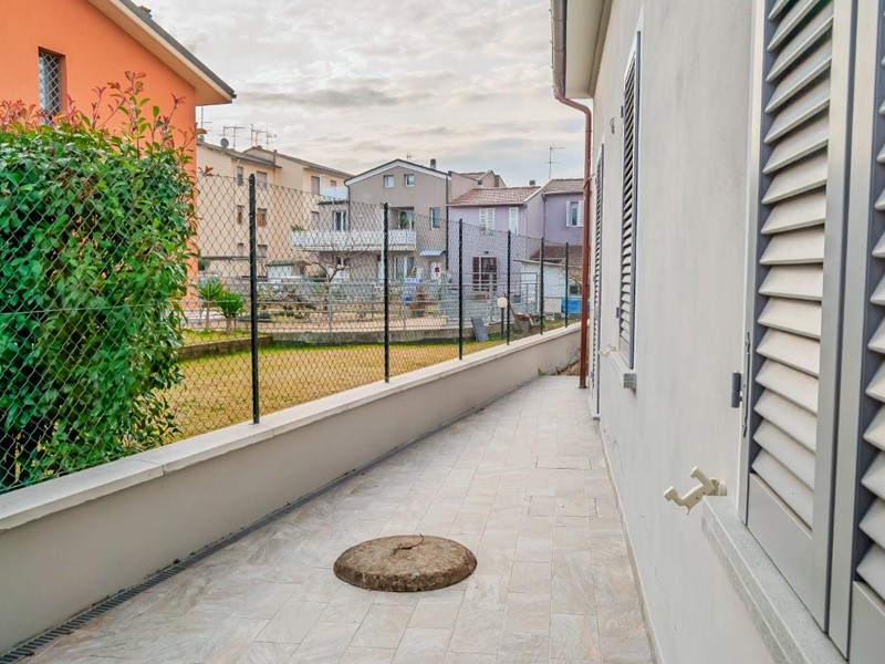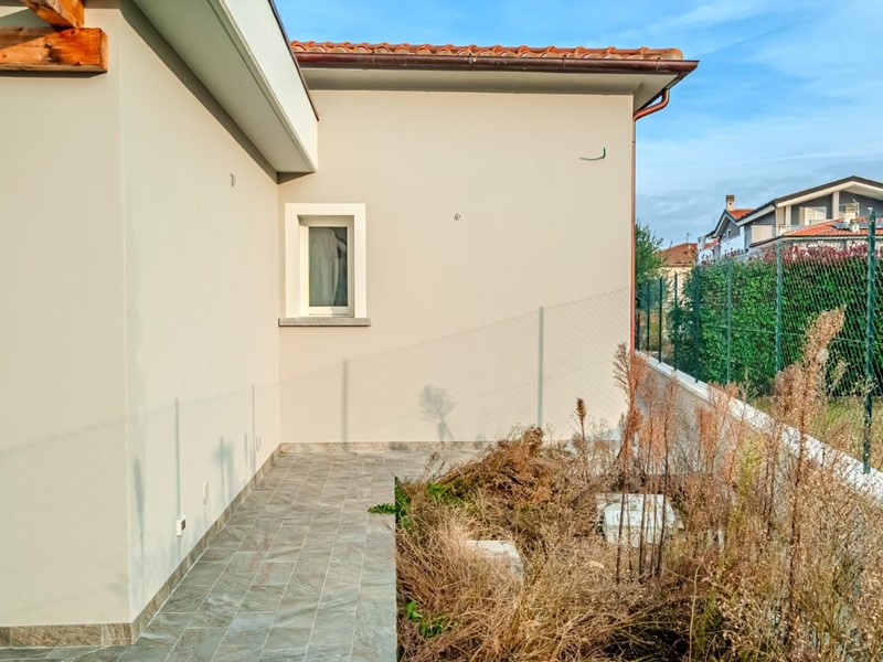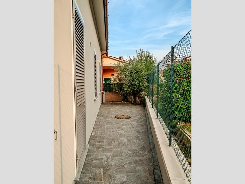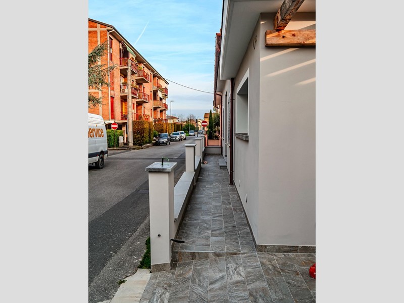 Villetta recentemente ristrutturata, in fase di completamento, di circa 140 mq su un unico piano, libera su tre lati, situata in un contesto residenziale centrale e tranquillo. L'ingresso si apre su un'ampia zona giorno, con soggiorno e cucina a vista. Questa area si affaccia su un pergolato che conduce a una loggetta, per un totale di 28 mq di spazio esterno. Un disimpegno separa la zona giorno dalla zona notte, che comprende due camere matrimoniali e una cameretta/studio. La zona notte è dotata di due bagni moderni, entrambi con finestra e doccia. Dalla cameretta si accede a un giardino privato di circa 90 mq.