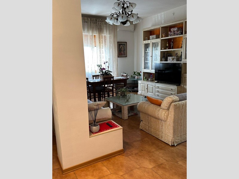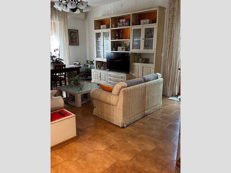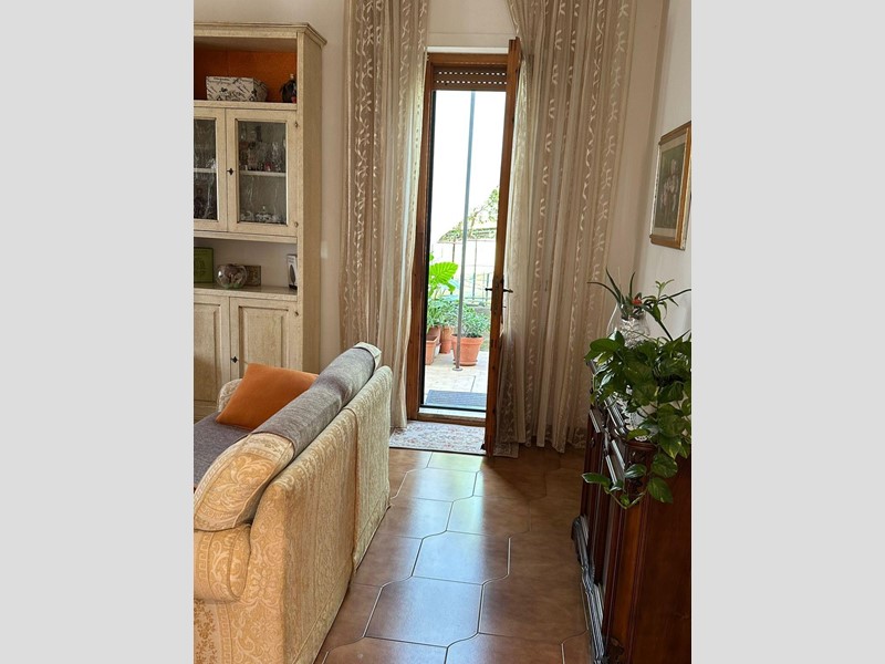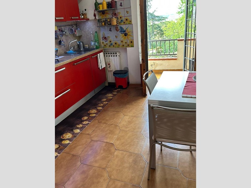 Sovigliana, zona clinica. Ampio appartamento con ingresso indipendente, situato al piano rialzato e composto da cucina abitabile, soggiorno, disimpegno notte, camera matrimoniale con bagno, camera doppia, ripostiglio e secondo bagno. Piccolo resede frontale e tergale. Al piano terra garage di mq. 20 circa