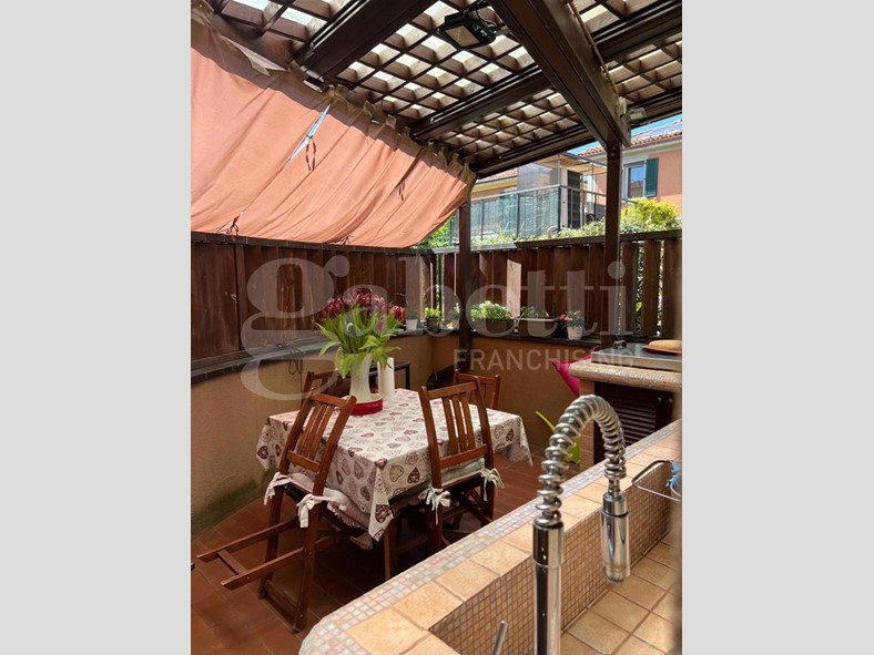 In laterale silenziosa e posizione interna, immersa nel verde, vendesi bellissima villetta comoda a tutti i servizi silenziosa e luminosa disposta su 3 livelli. Piano Terra : ingresso, ampio salone con accesso a spazio esterno tutto verandato di mq. 40, grande cucina abitabile con accesso a spazio esterno, in quest ' area troviamo bellissima cucina esterna cucina esterna e barbecue, al primo piano due camere da letto matrimoniali e un bagno, al piano superiore una grande camera mansardata con bagno e terrazzo di mq. 30. Piano seminterrato ampia taverna con camino funzionante, bagno con accesso al garage con 1 posto auto. Villetta in ottimo stato, indipendenza comodità e tranquillità rendono questa abitazione perfetta per un nucleo familiare. Per info e appuntamenti chiamare 3401116891