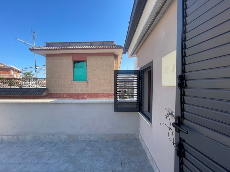 Fonte Nuova (Roma): Via della Doganella, a pochi passi da via Nomentana, la Grimaldi propone in vendita un attico posto al piano terzo ( no ascensore), frutto di una recente ristrutturazione. E' composto da soggiorno, cucina abitabile, camera, bagno e terrazzo esclusivo a livello per godersi momenti di relax e tranquillità. La superficie dell'abitazione è 58 mq e del terrazzo 40 mq. Ottima esposizione, gradevoli affacci, ed inoltre la palazzina è stata ristrutturata anch'essa recentemente. Infissi in doppio vetro, porta blindata, pannelli fotovoltaici e solare termico, aria condizionata, persiane in alluminio regolabili, videocitofono, caldaia a condensazione. Un attico "green" a risparmio energetico è una soluzione abitativa che integra tecnologie e materiali sostenibili per ottimizzare l'efficienza energetica, ridurre i consumi e migliorare il comfort abitativo. La posizione centrale permette di raggiungere facilmente servizi, negozi e mezzi pubblici. Questa dimora è un'opportunità da non perdere per chi cerca un rifugio tranquillo a pochi passi dalla città. "Agevolazioni sul tasso di mutuo per la classe energetica". Classe energetica A4