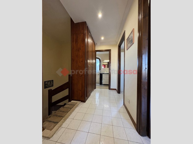 Al primo piano si trovano tre camere da letto di cui due con vista libera verso la piscina, un corridoio arredato con armadio a muro ed un bagno con doccia.