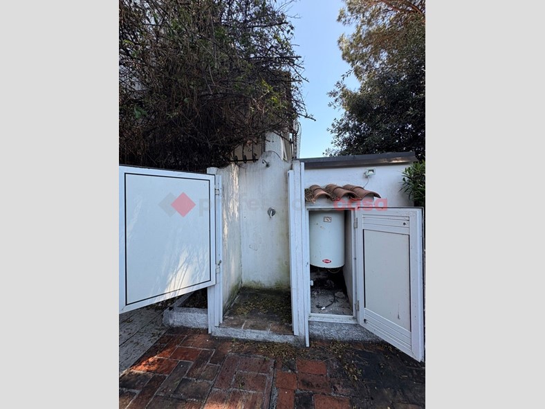 L'incantevole villa a schiera dispone di due ingressi pedonali, il principale dalla strada principale e l'altro dal viottolo vicinissimo alla piscina condominiale.
