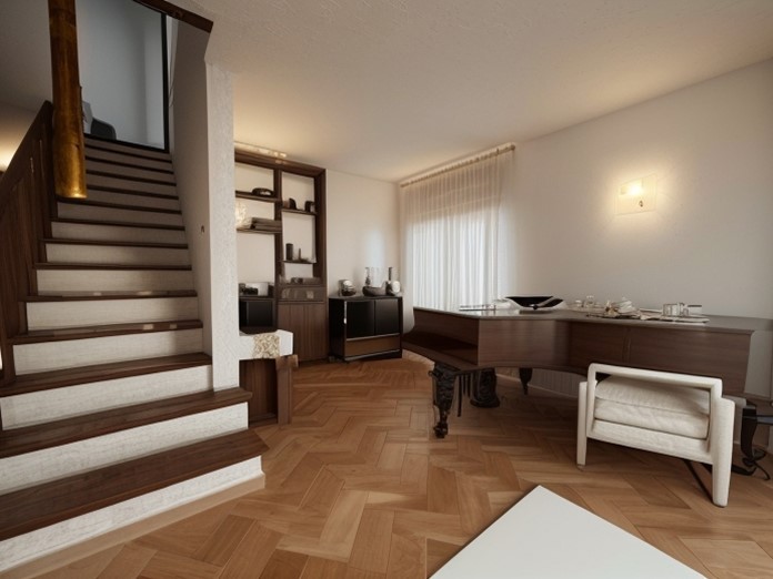 La proprietà si sviluppa su due piani più un terzo livello mansardato. L'interno dispone di un ampio salone che offre un ambiente luminoso e spazioso con affaccio diretto su un terrazzo panoramico ideale per rilassarsi ed intrattenere gli ospiti, sei camere, quattro servizi ed una cucina abitabile con tinello annesso.