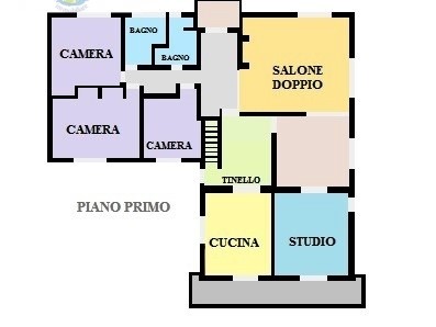 Al piano nobile atrio da cui si accende al salone doppio e luminoso che ospita un importante camino in pietra, grande studio con accesso separato, tinello, cucina abitabile, tre camere matrimoniali e doppi servizi.