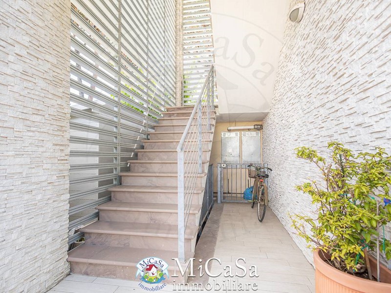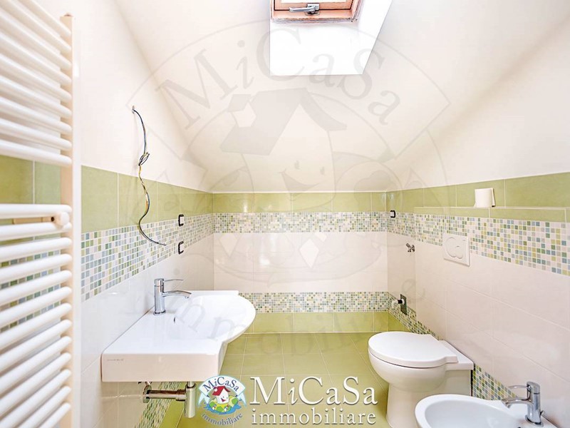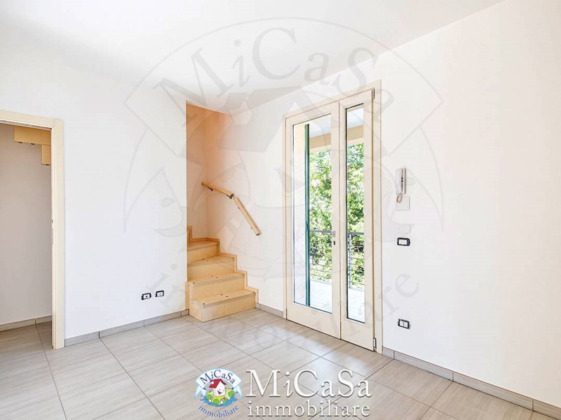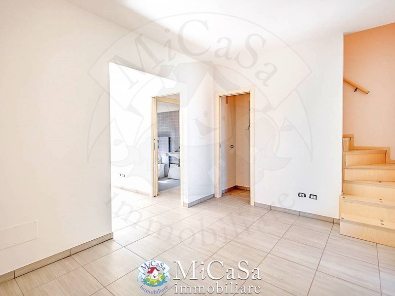 Composto da: ingresso in soggiorno , sala pranzo con angolo cottura, bagno con box doccia e ripostiglio e terrazza. Al piano mansardato troviamo altri due vani, servizi finestrati e terrazza a tasca.