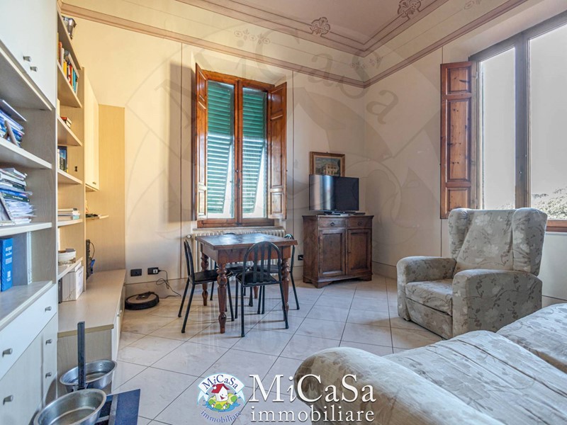 In posizione residenziale e riservata, proponiamo porzione di prestigioso appartamento in duplex in stile Liberty. Da ingresso indipendente al piano terra si accede all'ampia scala padronale che conduce al primo piano dove si sviluppa l'abitazione, composta da ampio ingresso trazionale affrescato, luminoso salone con doppio affaccio vista mare, cucina abitabile con camino, camera matrimoniale, camera media con soppalco e camera singola con accesso al balcone vista a mare, bagno con finestra dotato di vasca e doccia, un bagno di servizio con finestra, utile anche come lavanderia, oltre ad un vano ad uso studio con scala tradizionale per accedere alla grande mansarda, completamente ristrutturata, attualmente divisa in più stanze pluriuso, oltre che ad un comodo bagno completo di doccia.