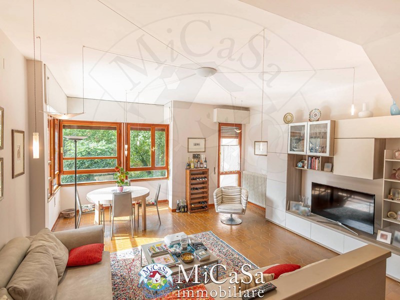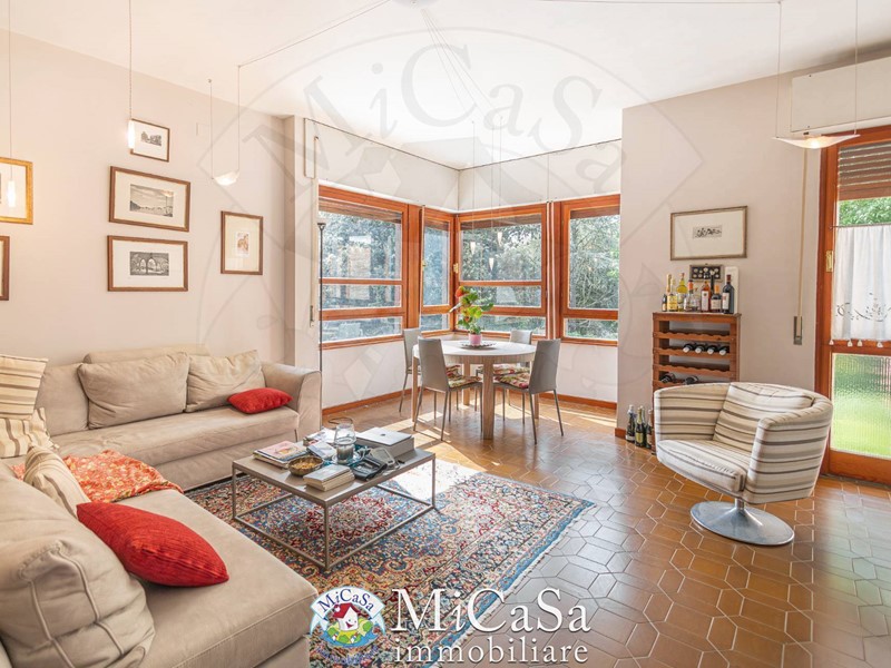 Completano la proprietà: giardino esclusivo di 60 mq e ingresso piastrellato di 20 mq per il parcheggio di biciclette e motorini. Mansarda per l'intera superficie dell'immobile avente una altezza di circa 2,70 nel punto piu alto. Infissi e tapparelle originali in douglas. Riscaldamento autonomo con caldaia a condensazione