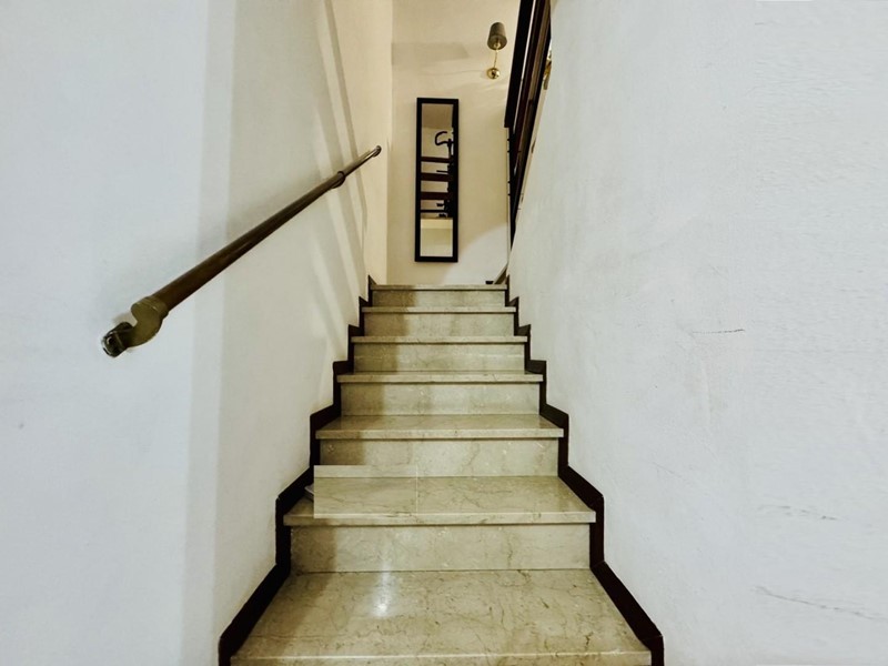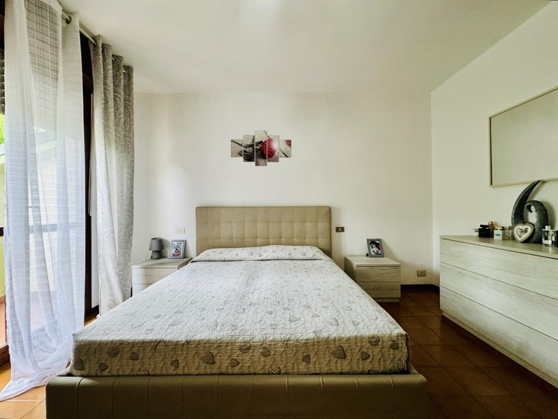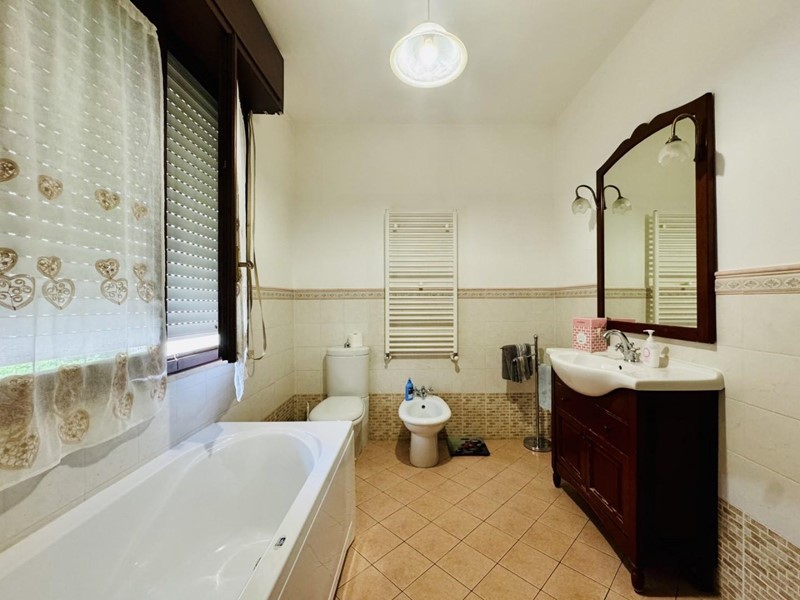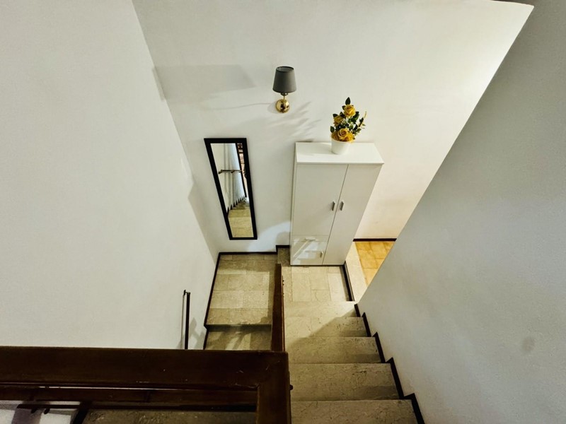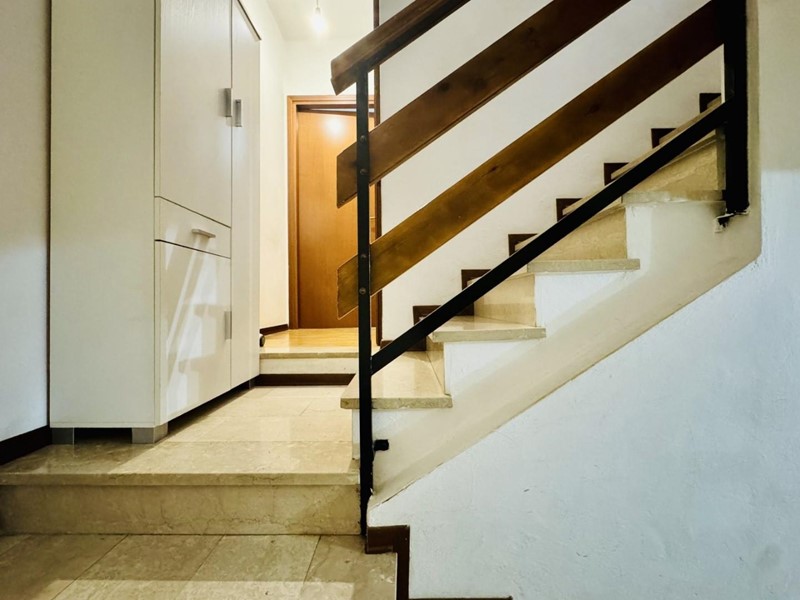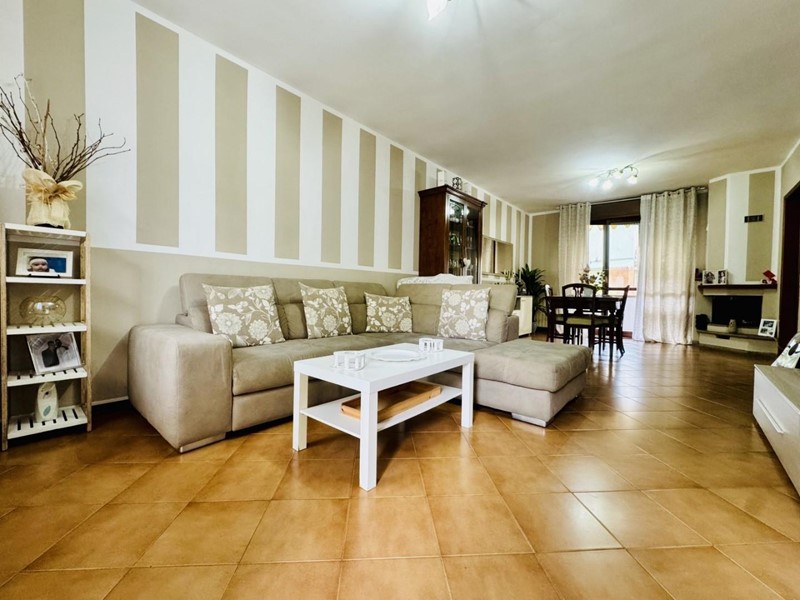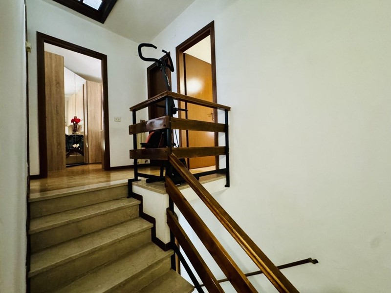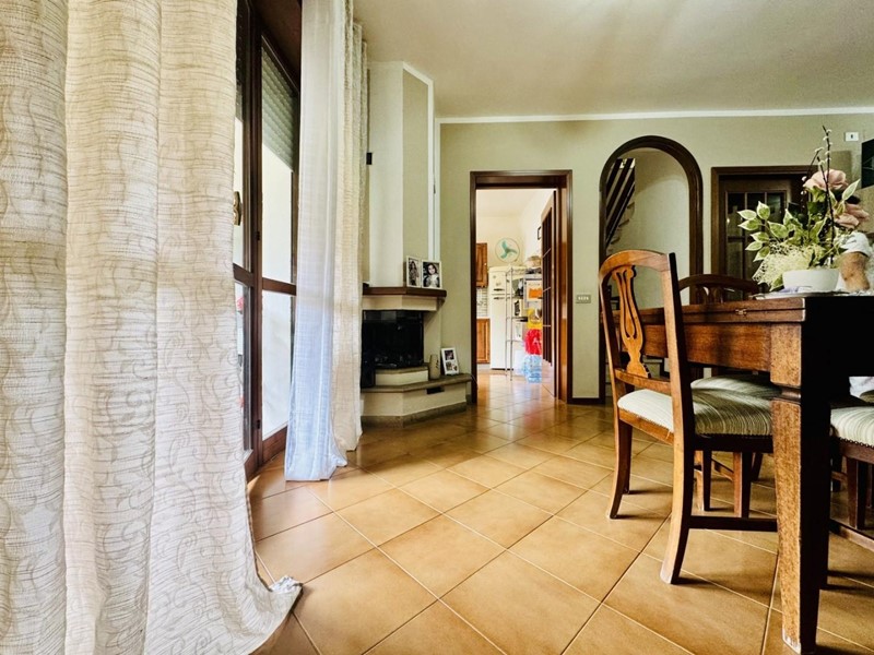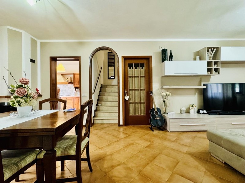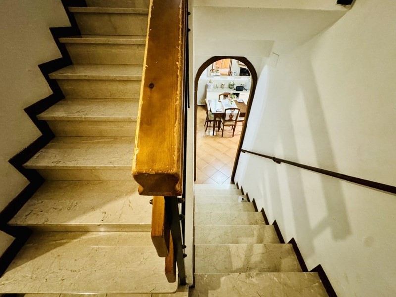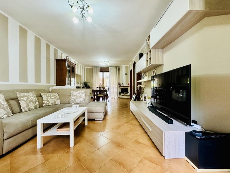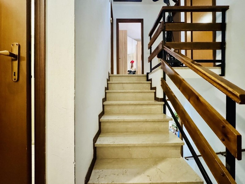 La casa si sviluppa su tre livelli fuori terra. Il piano terreno rialzato ospita la zona giorno suddivisa in cucina abitabile, sala pranzo e soggiorno TV con camino. Dalla porta a finestra si fuoriesce sul giardino. La zona notte si trova a piano superiore. Le camere da letto sono tre, tutte matrimoniali. La stanza padronale fruisce di un balcone. I bagni al servizio dell'immobile sono due uno con doccia (ed aerazione forzata) ed uno con vasca.
