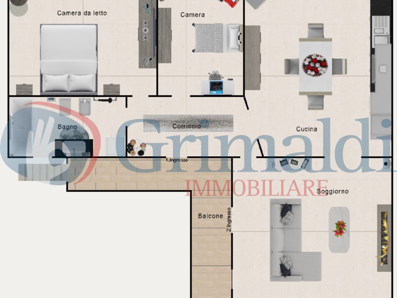 Due ingressi offrono flessibilità e funzionalità. Dal primo si accede alla zona notte, composta da un bagno con vasca, spazioso e funzionale e due camere da letto con finestra, calde e accoglienti, ideali per garantire privacy e tranquillità. Dal secondo ingresso si apre invece un ampio salone luminoso, arricchito da un camino che renderà speciali le giornate d'inverno, creando un'atmosfera intima e familiare. Dal soggiorno si accede direttamente alla cucina abitabile, un ambiente pratico e funzionale, dotato di finestra che lascia entrare luce naturale per tutto il giorno. È lo spazio perfetto dove iniziare la giornata con il profumo del caffè appena fatto, oppure dove riunirsi la sera per condividere i momenti più belli in famiglia. La disposizione permette una buona organizzazione degli arredi e degli elettrodomestici, lasciando spazio anche per un comodo tavolo da pranzo.