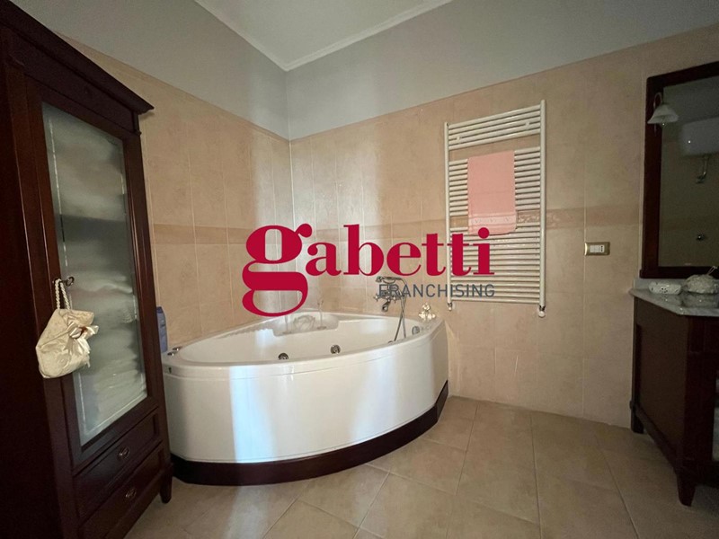 L'appartamento si compone di un ampio soggiorno doppio con grande camino, una camera matrimoniale con bagno privato dotato di vasca idromassaggio, lavanderia, due camerette e un secondo bagno con doccia. Gli spazi interni sono ben distribuiti e ideali per una famiglia.
