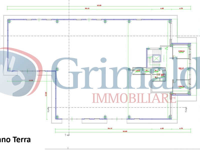 Questa struttura, DA ULTIMARE, si trova in una zona commerciale strategica e dispone di un triplo accesso carrabile per agevolare le operazioni logistiche, sviluppa una superficie di circa 950mq al piano Terra con un'altezza massima di 6,50m; al piano Primo invece troviamo la zona uffici e sala riunioni per complessivi 372mq con un'altezza di 3,20m. Predisposto per Ascensore.