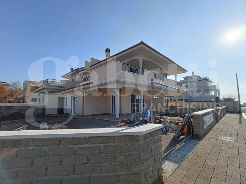 Anzio Lido delle Sirene, precisamente a Lungomare delle Sirene, proponiamo in vendita ville di nuova costruzione immerse nel verde e situate fronte mare con accesso allo stabilimento balneare e alla spiaggia libera antistante. Le case sono realizzate nel rispetto della natura e secondo i moderni standard di qualità e risparmio energetico. Le ville sono dotate di infissi vetrocamera a isolamento termoacustico, persiane blindate, pannello fotovoltaico da 3 kw, riscaldamento autonomo con pompe di calore freddo/caldo e boiler acqua calda da 300 lt. Predisposizioni allarme antifurto, irrigazione giardini, cancello automatizzato, doccia esterna e internet. Classe Energetica A. L'immobile è disposto su due livelli, al piano terra troviamo soggiorno con angolo cottura, camera da letto, bagno con doccia e ampio patio fronte mare. Al piano superiore troviamo 2 camere da letto, bagno con doccia e terrazzo con predisposizione cucina e barbecue e accesso al solarium panoramico. Completano la proprietà un giardino di 115 mq e posto auto. Ideali sia come prima casa che come casa per vacanza.